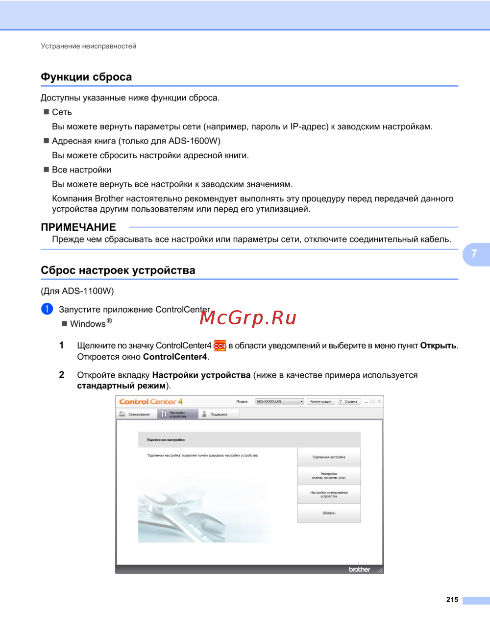 Brother ADS1600W (ADS1600WR1) — устранение неисправностей и сброс настроек устройства [229/252]