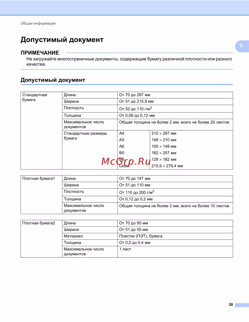 Brother ADS1600W (ADS1600WR1) [42/252] Допустимый документ