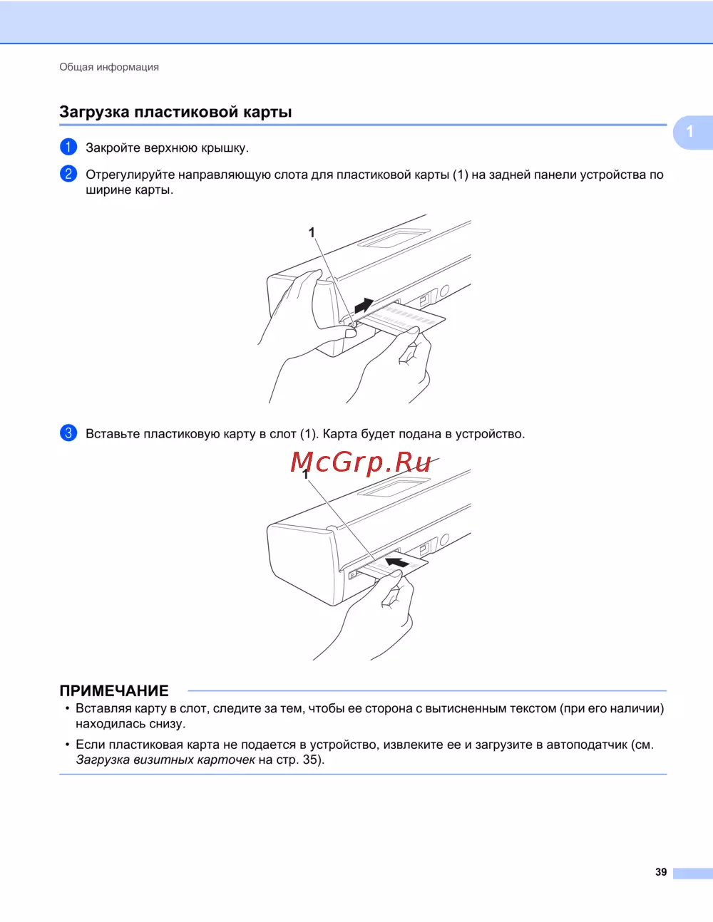 Brother ADS1600W (ADS1600WR1) — инструкция по загрузке пластиковой карты в устройство [53/252]