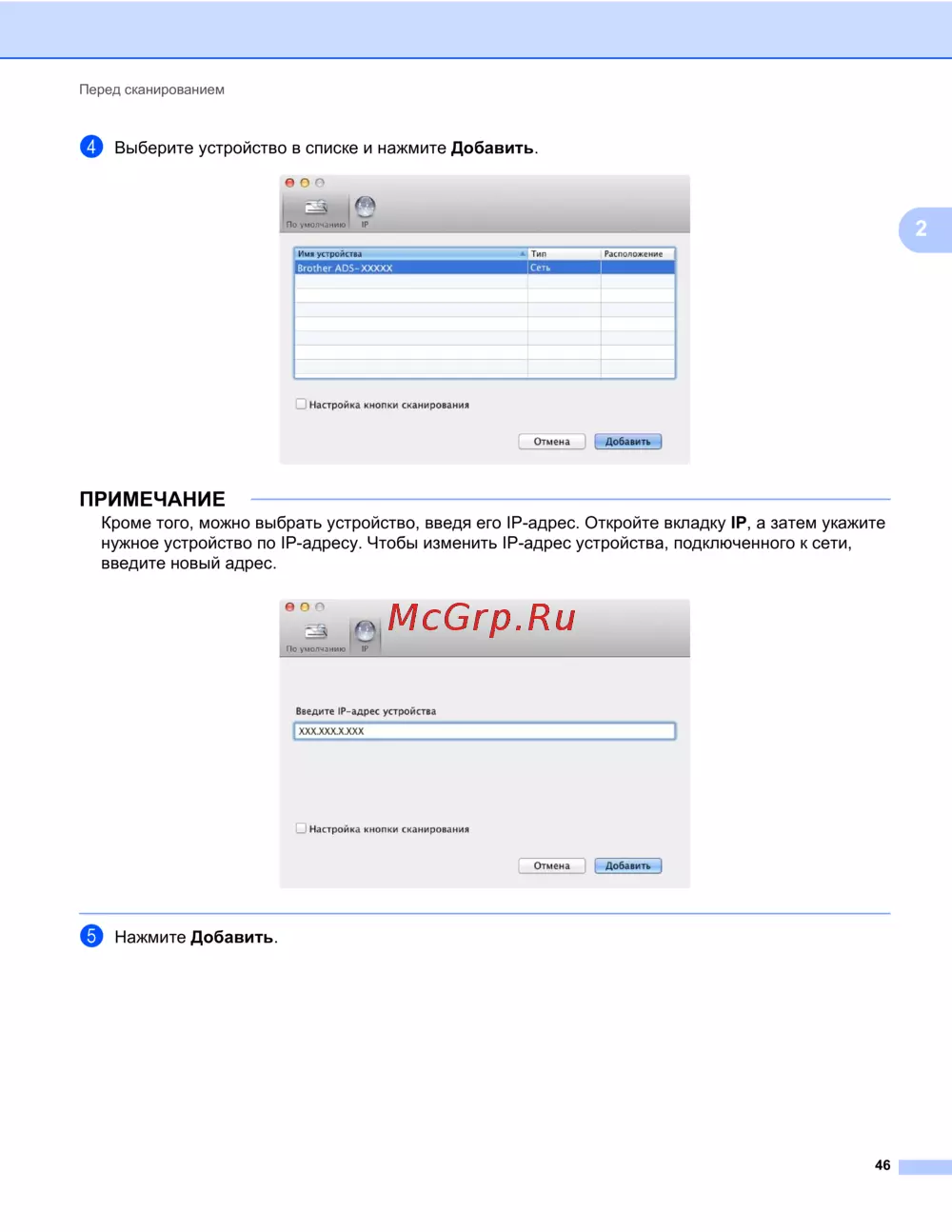 Кроме того, можно выбрать устройство, введя его IP-адрес. Откройте вкладку IP, а затем укажите