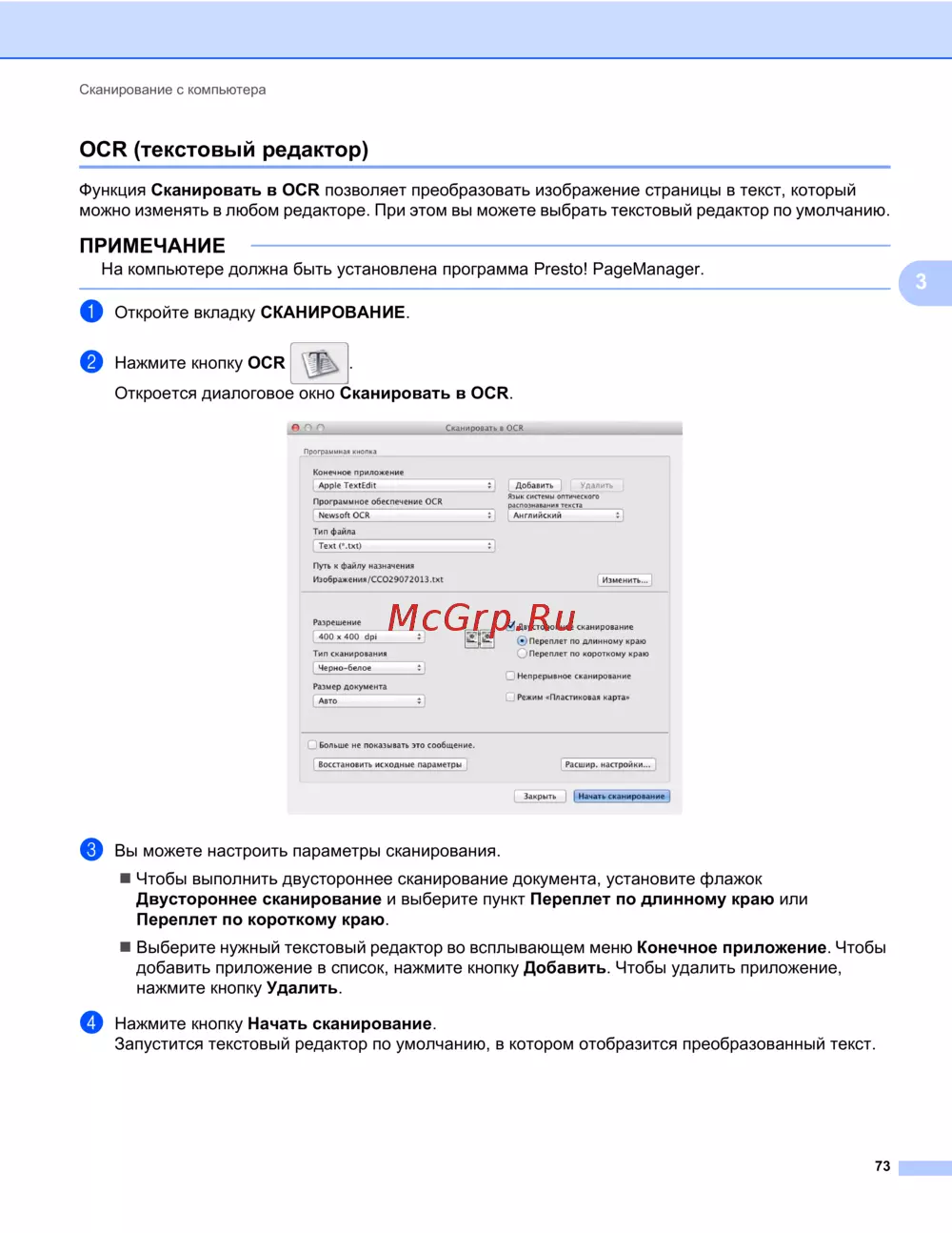 Функция Сканировать в OCR позволяет преобразовать изображение страницы в текст, который