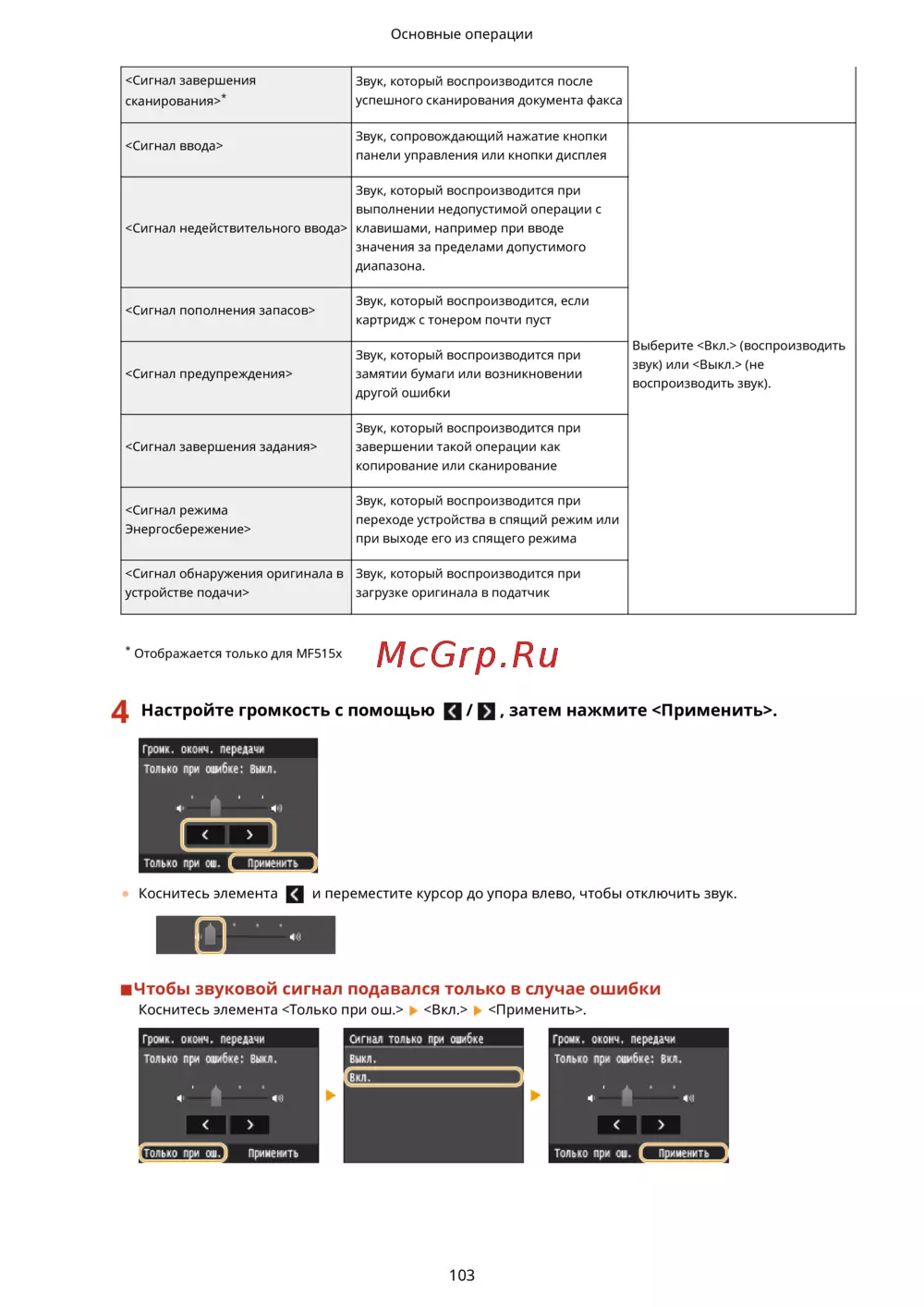Canon i-SENSYS MF515x — настройка звуковых сигналов для офисных устройств [113/950]
