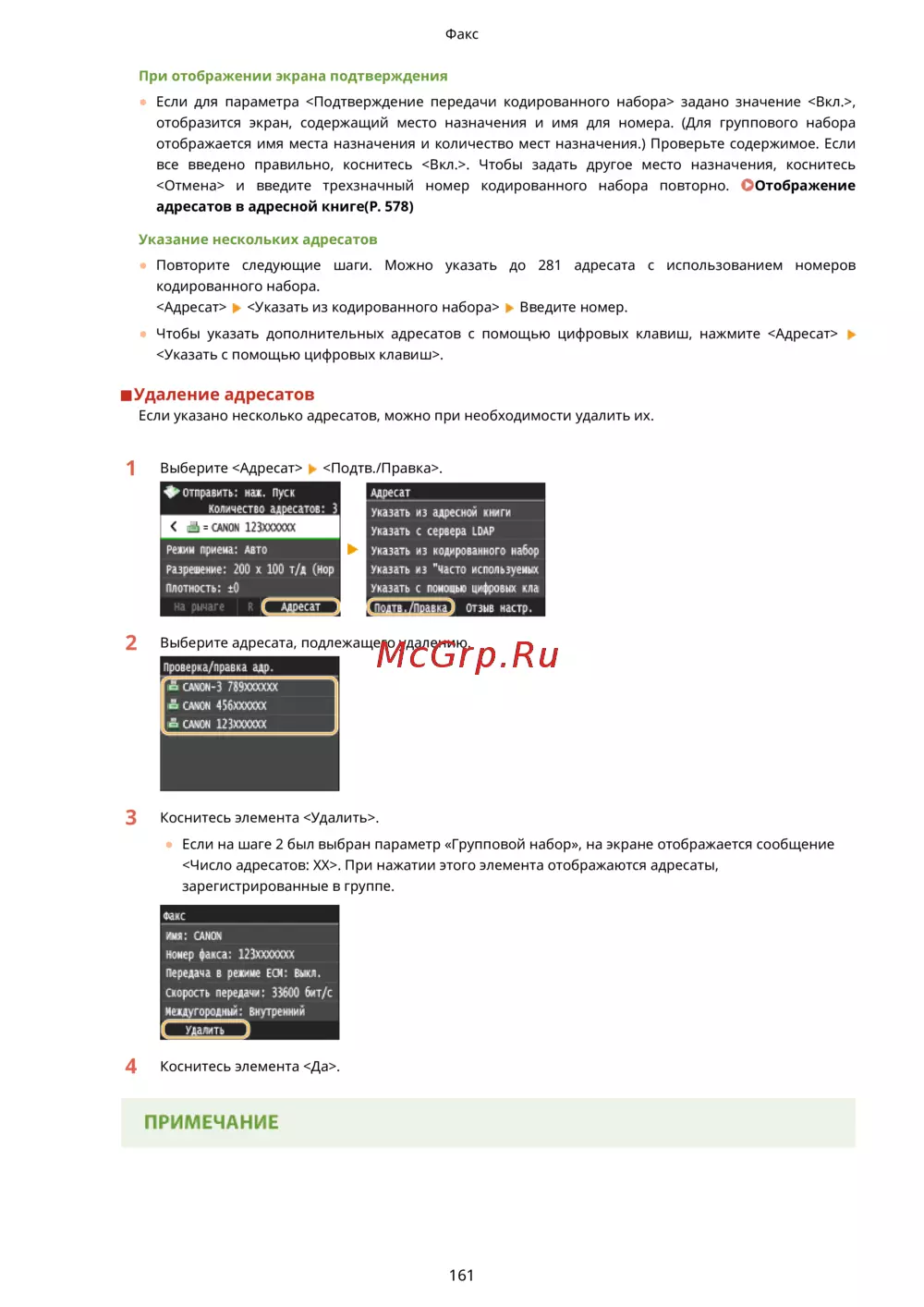 Canon i-SENSYS MF515x [171/950] Удаление адресатов