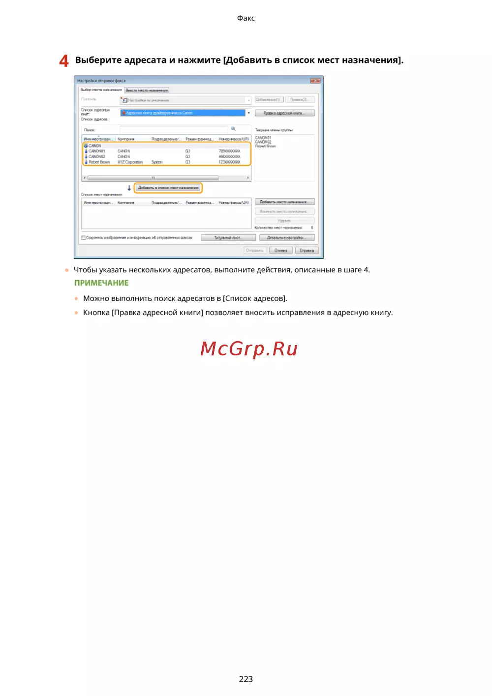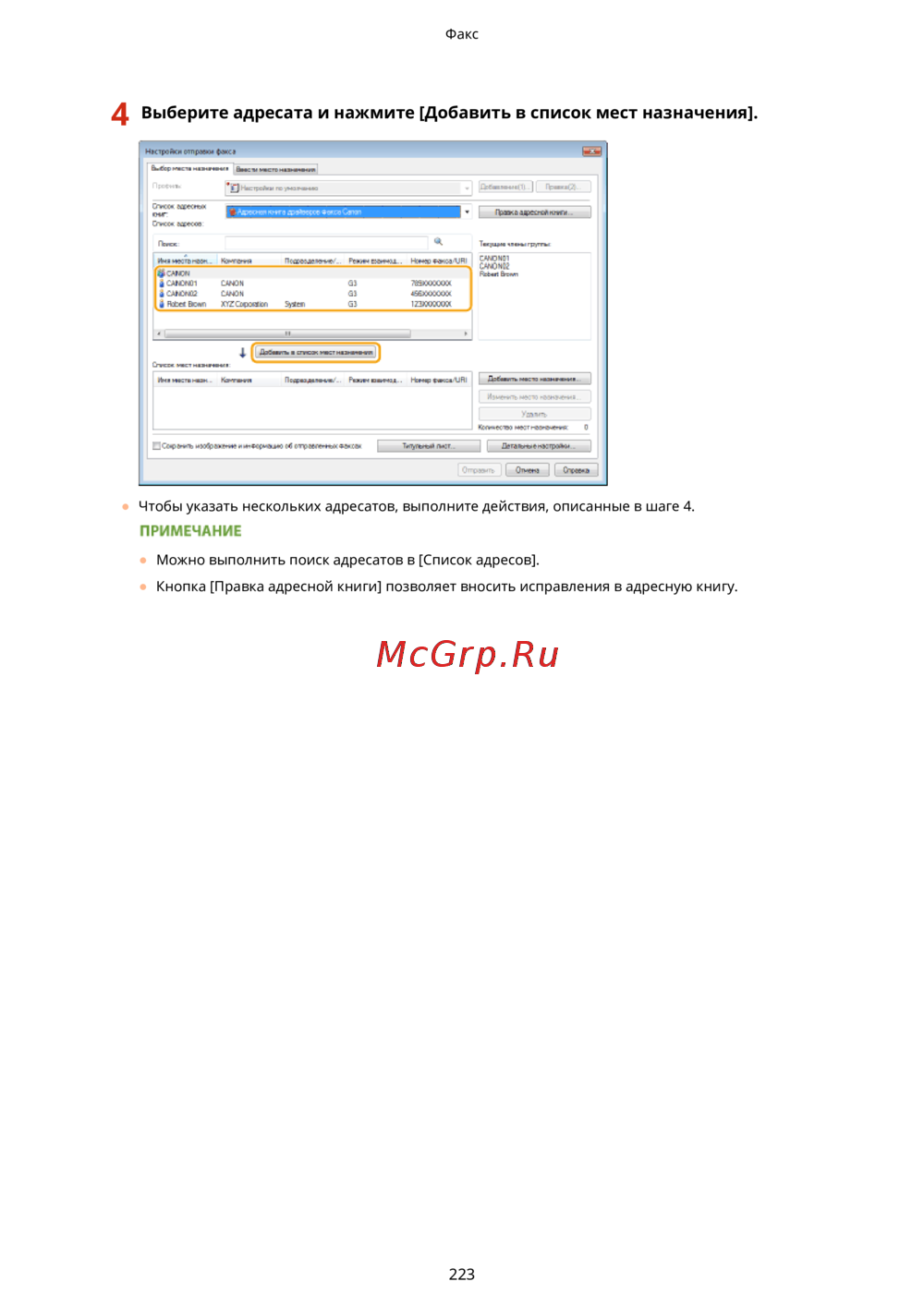 Canon i-SENSYS MF515x [233/950] Выберите адресата и нажмите добавить в список мест назначения