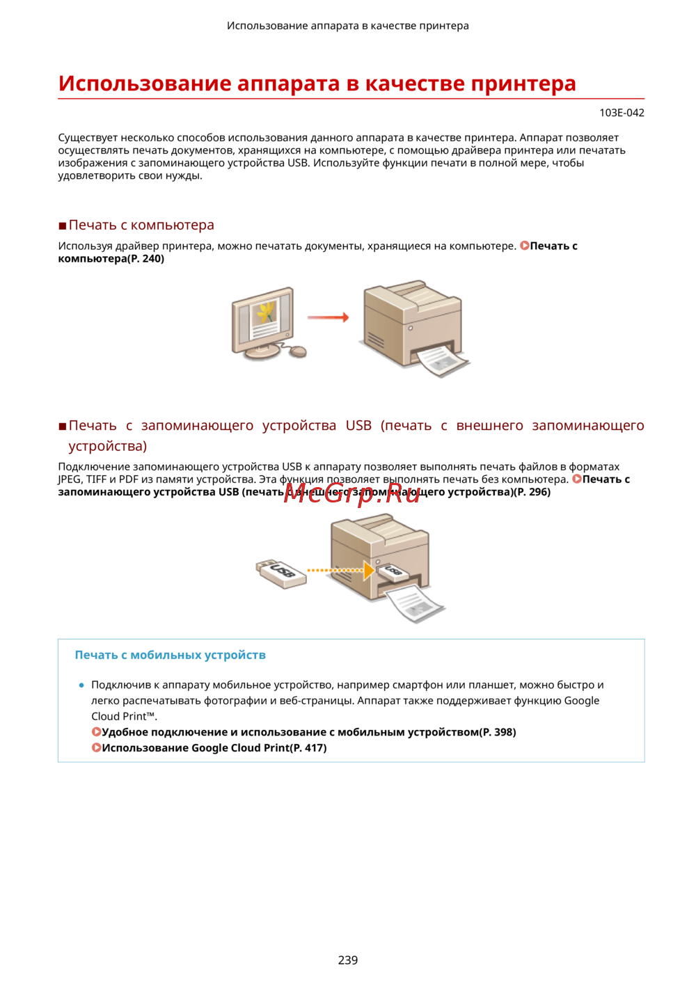 JPEG, TIFF и PDF из памяти устройства. Эта функция позволяет выполнять печать без компьютера. Печать с
