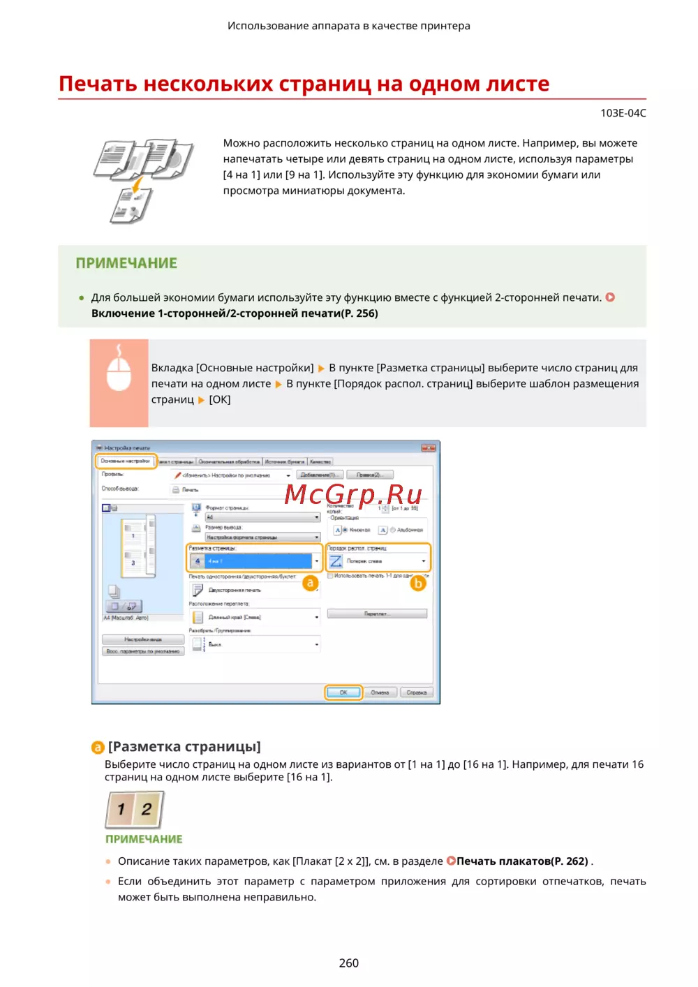 Canon i-SENSYS MF515x — печать нескольких страниц на одном листе для экономии бумаги [270/950]