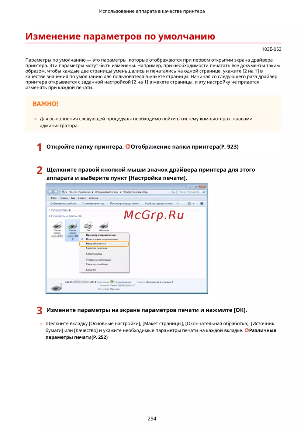 принтера. Эти параметры могут быть изменены. Например, при необходимости печатать все документы таким