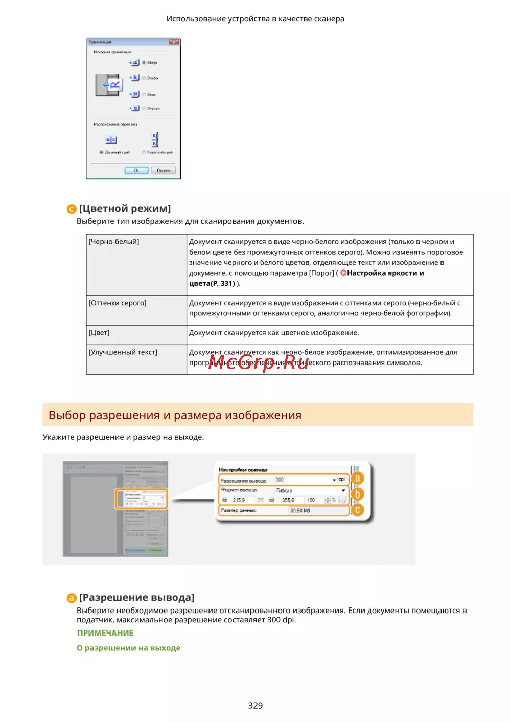 Выберите необходимое разрешение отсканированного изображения. Если документы помещаются в