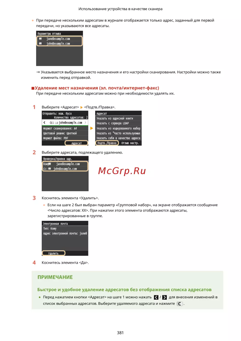 Canon i-SENSYS MF515x [391/950] Удаление мест назначения эл почта интернет факс