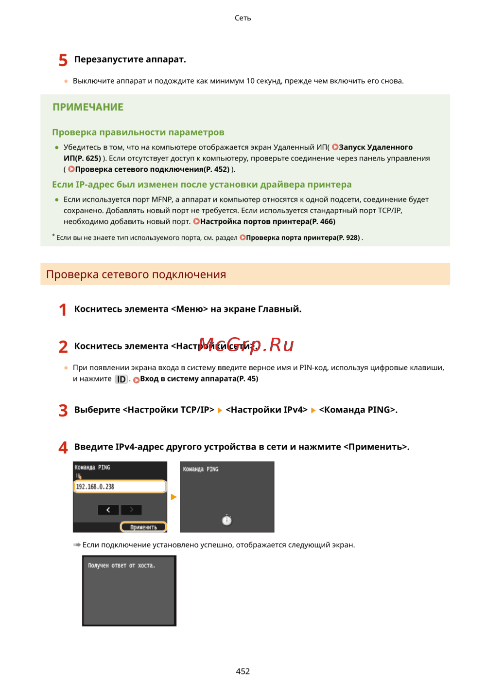 ![Canon i-SENSYS MF515x [462/950] Проверка сетевого подключения](/views2/1287406/page462/bg1ce.png)