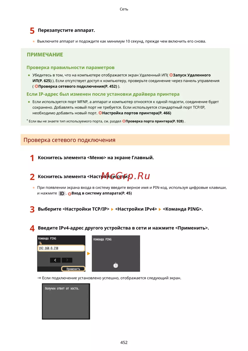 Canon i-SENSYS MF515x [462/950] Проверка сетевого подключения