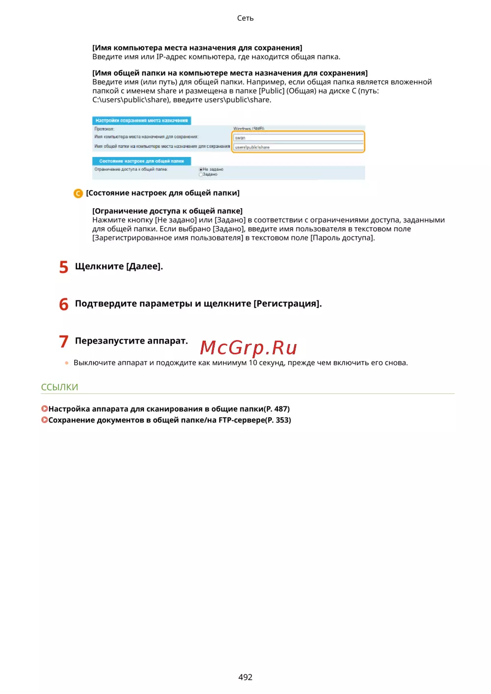 Настройка аппарата для сканирования в общие папки(P. 487)