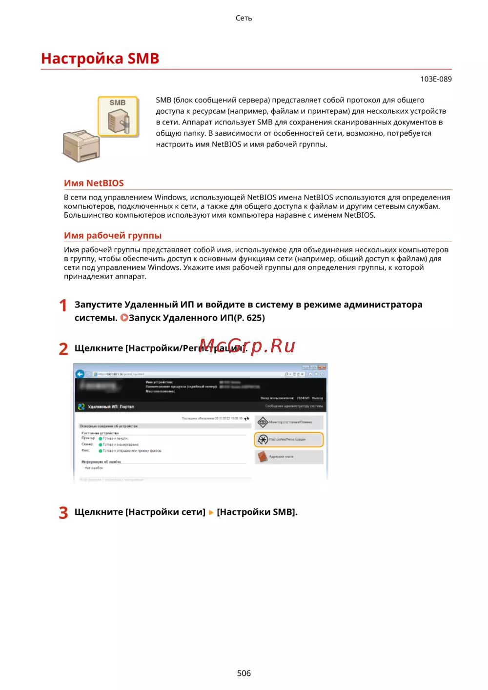 в сети. Аппарат использует SMB для сохранения сканированных документов в