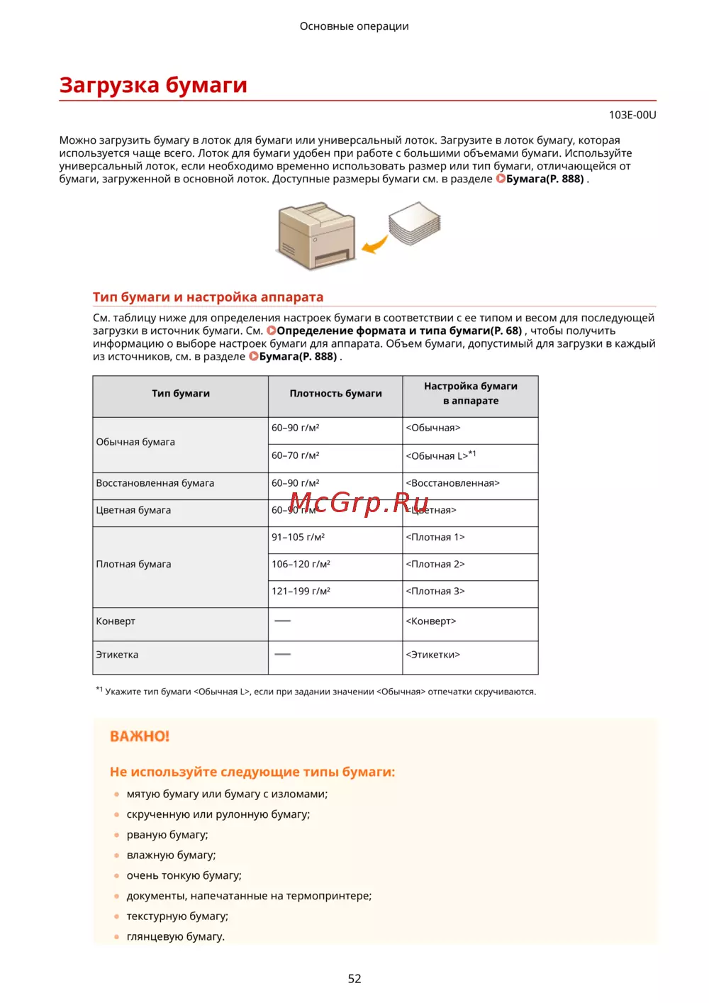 загрузки в источник бумаги. См. Определение формата и типа бумаги(P. 68) , чтобы получить