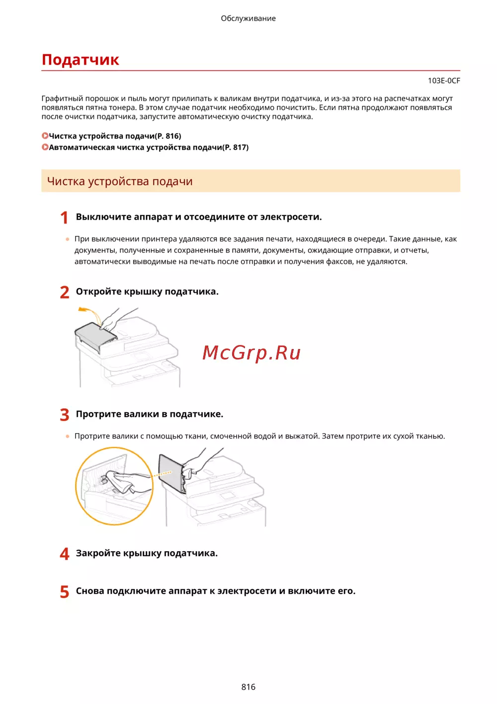 Чистка устройства подачи(P. 816)