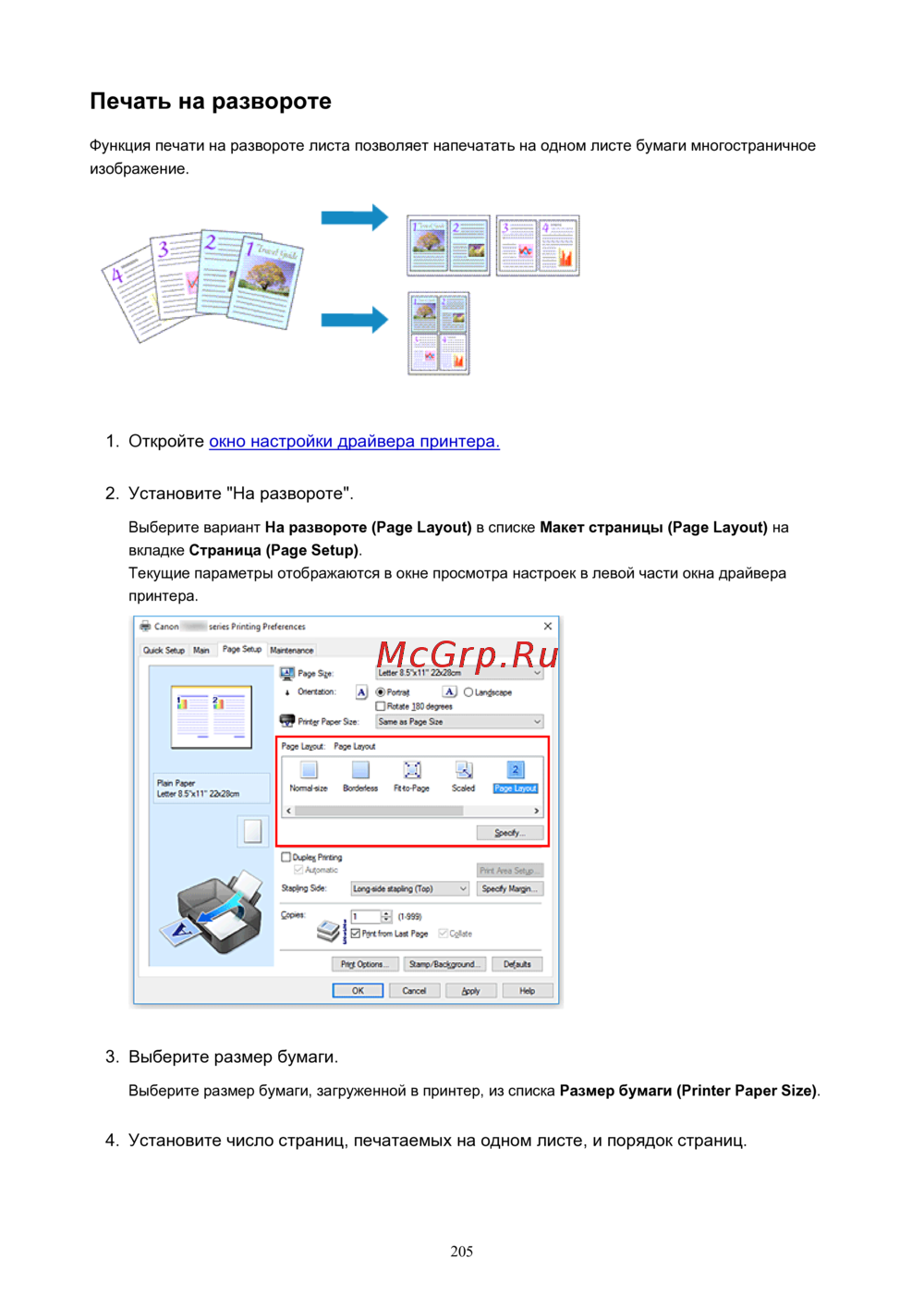 Функция печати на развороте листа позволяет напечатать на одном листе бумаги многостраничное