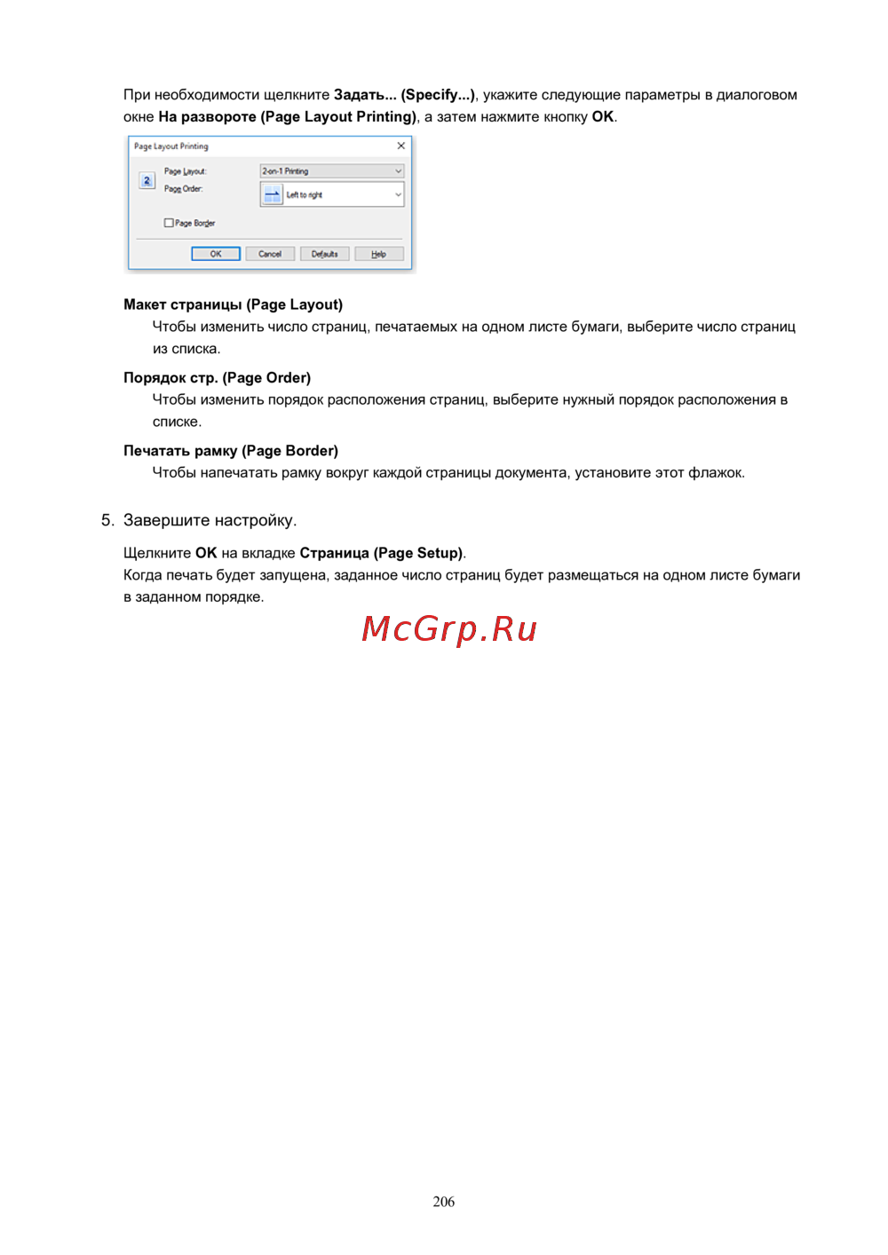 Canon PIXMA TS5140 — настройка макета страницы для печати документов [206/447]