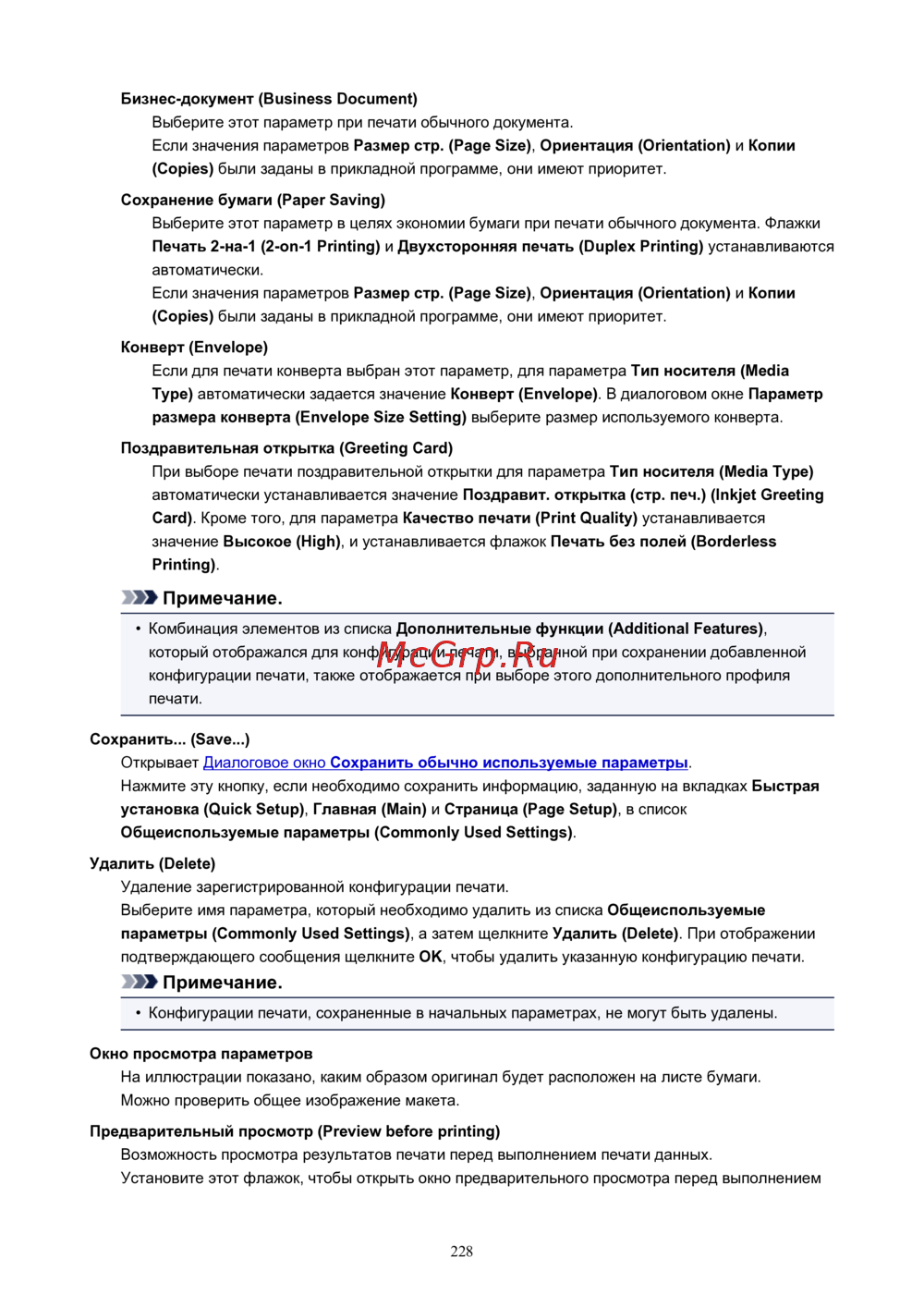 Canon PIXMA TS5140 — настройки печати: выбор параметров для различных документов [228/447]
