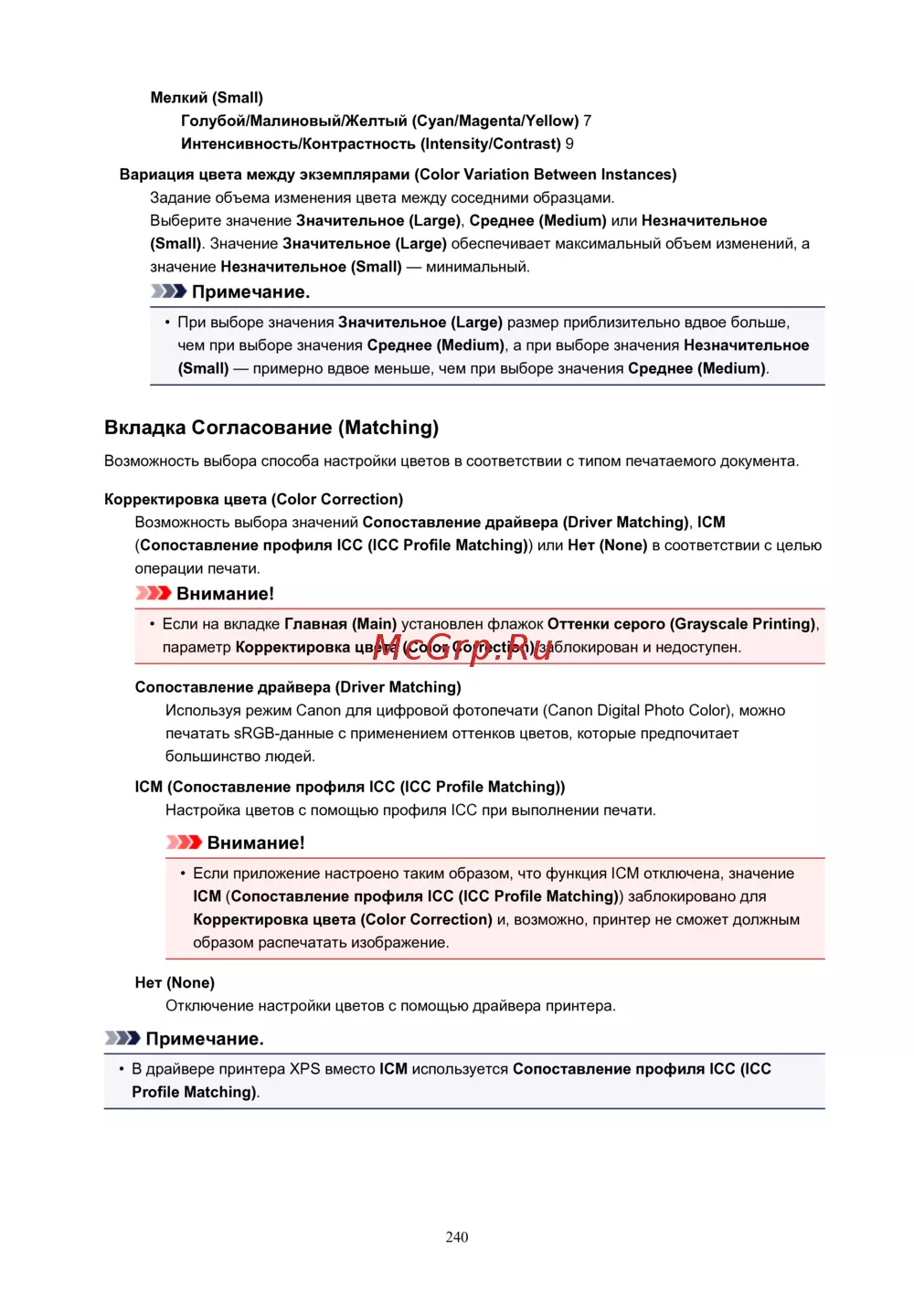Canon PIXMA TS5140 — настройка цветопередачи и коррекции для печати документов [240/447]