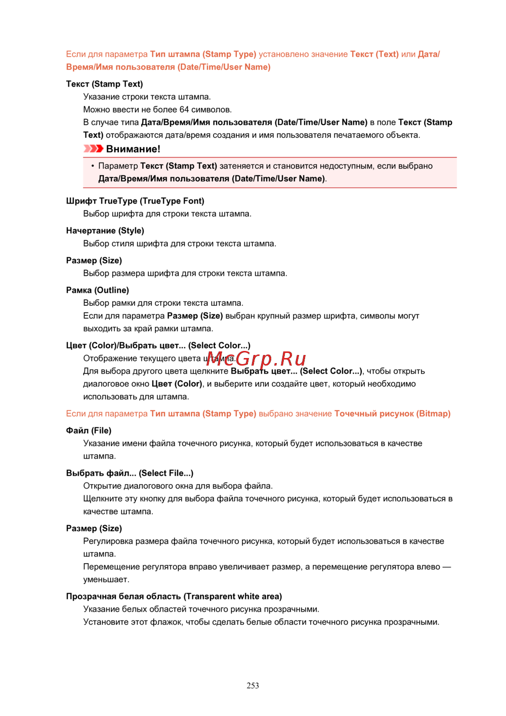 Canon PIXMA TS5140 — настройки штампов: текст, дата и точечные рисунки [253/447]