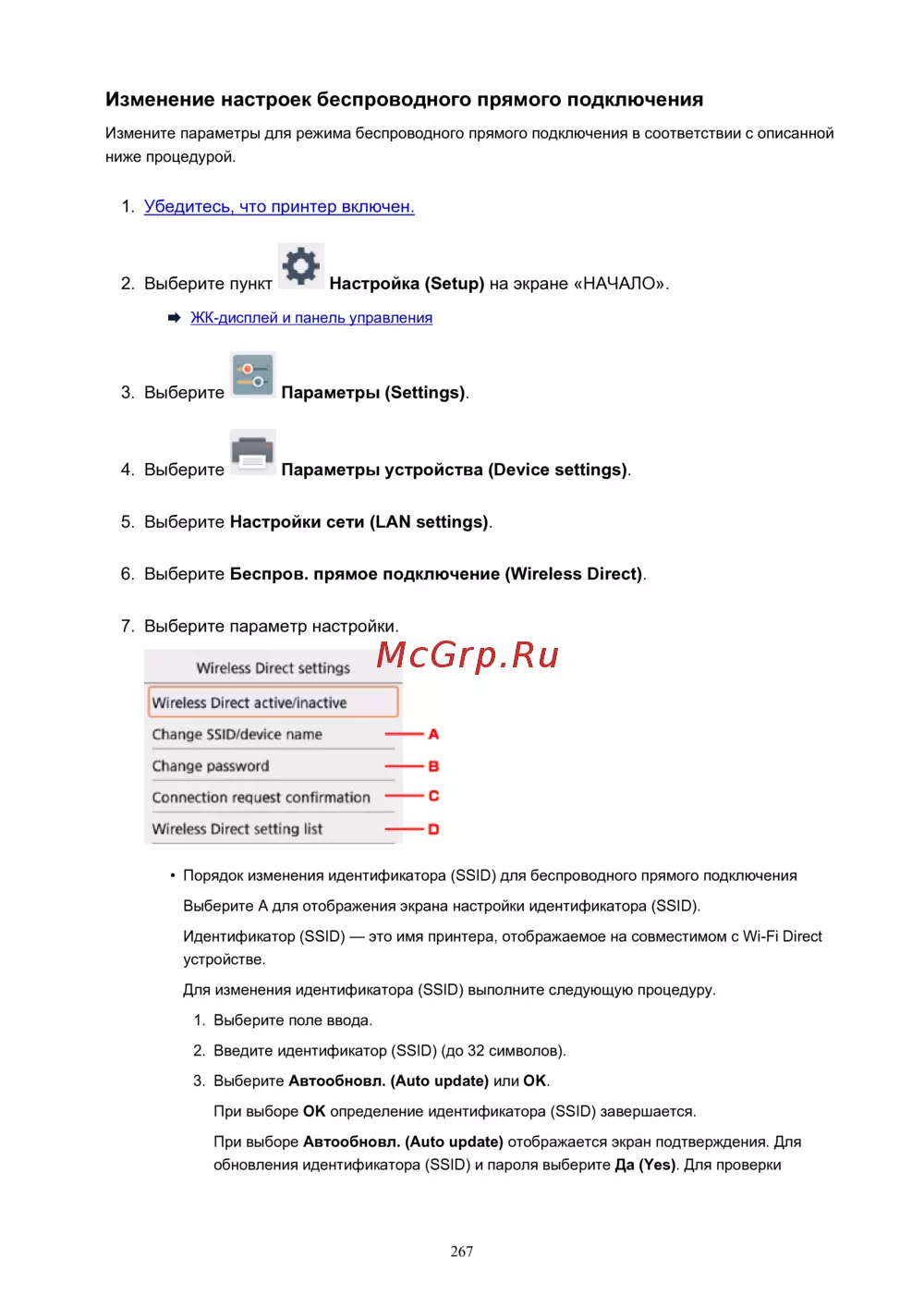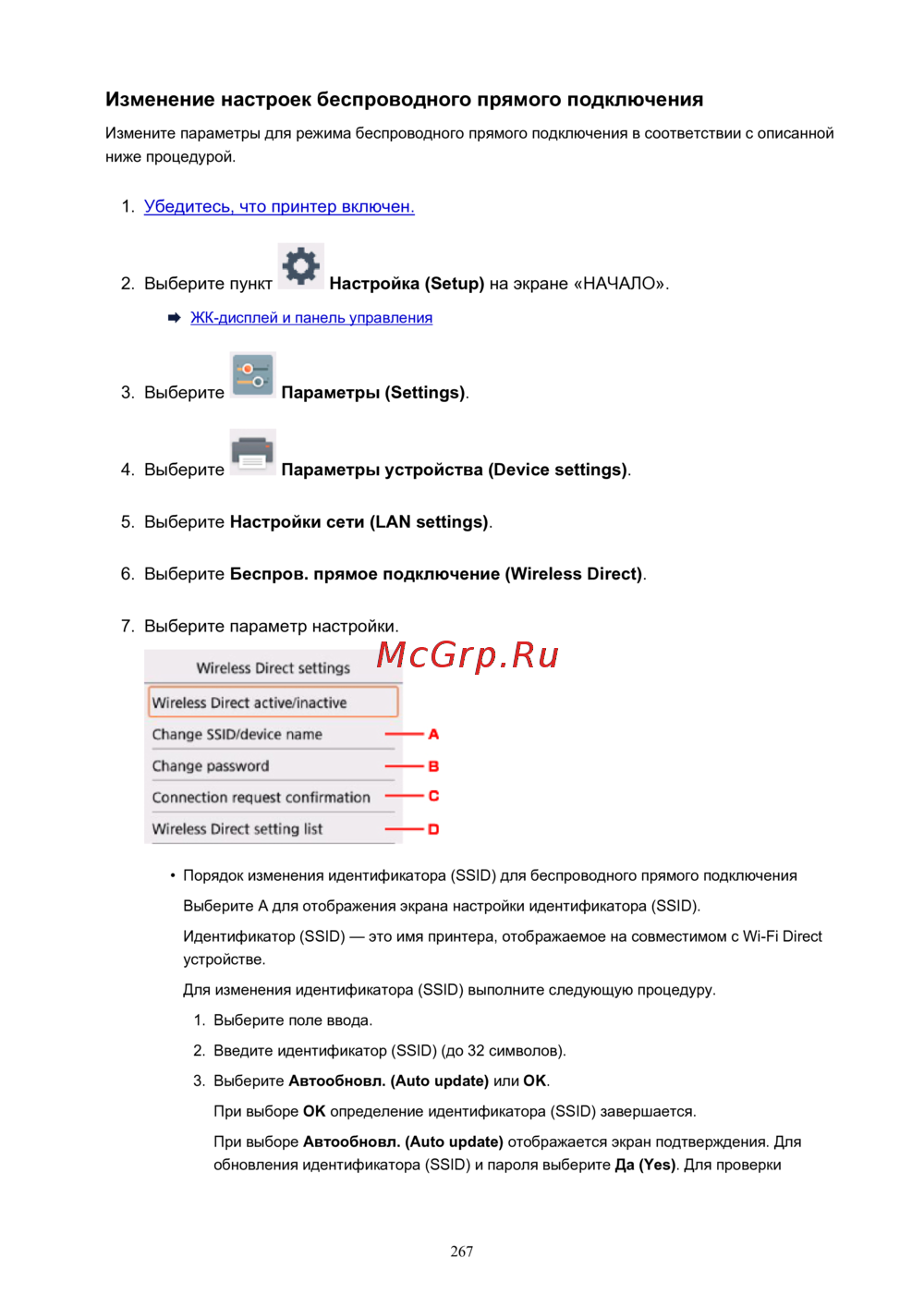 Canon PIXMA TS5140 — настройка беспроводного прямого подключения: пошаговое руководство [267/447]