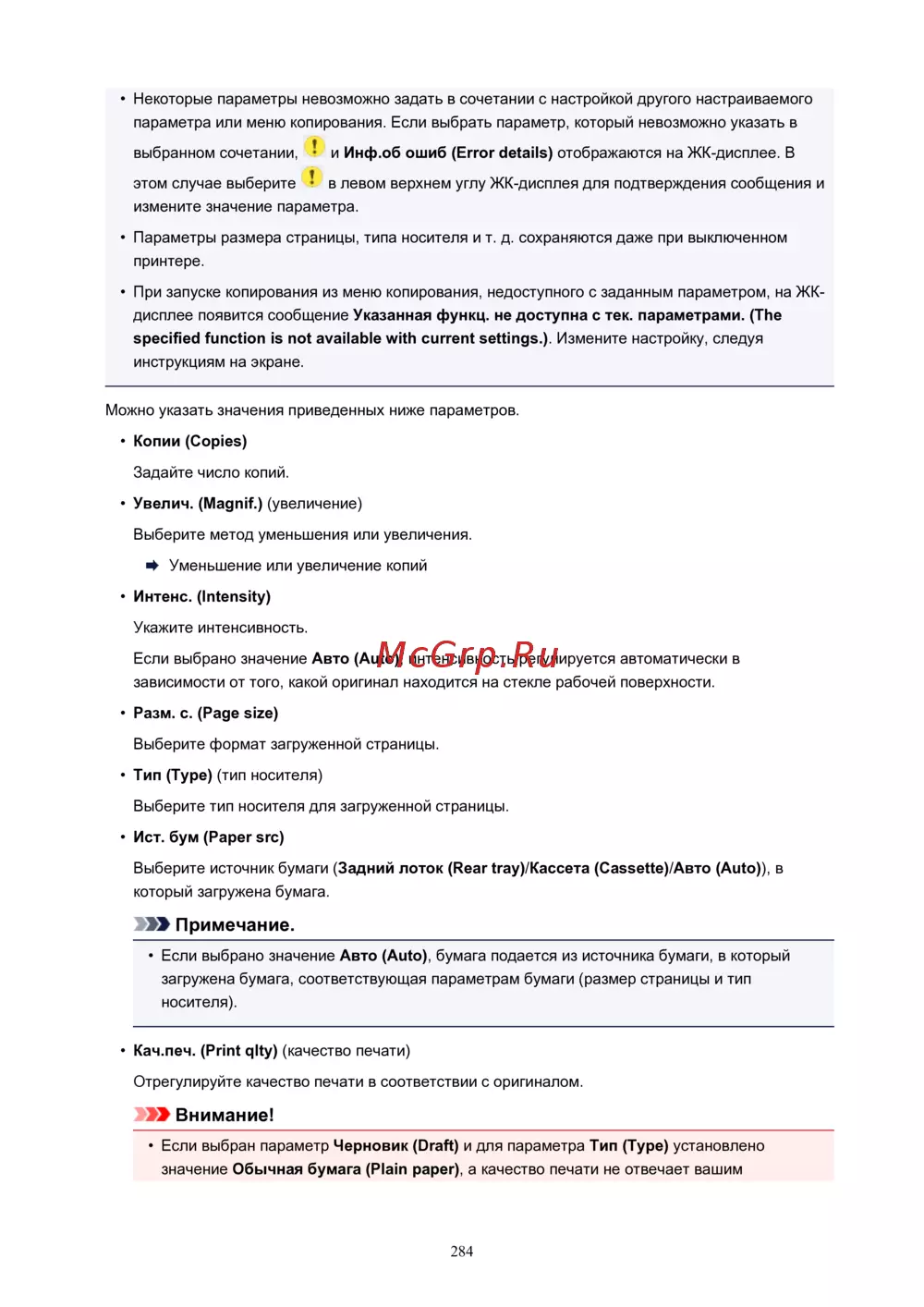 параметра или меню копирования. Если выбрать параметр, который невозможно указать в