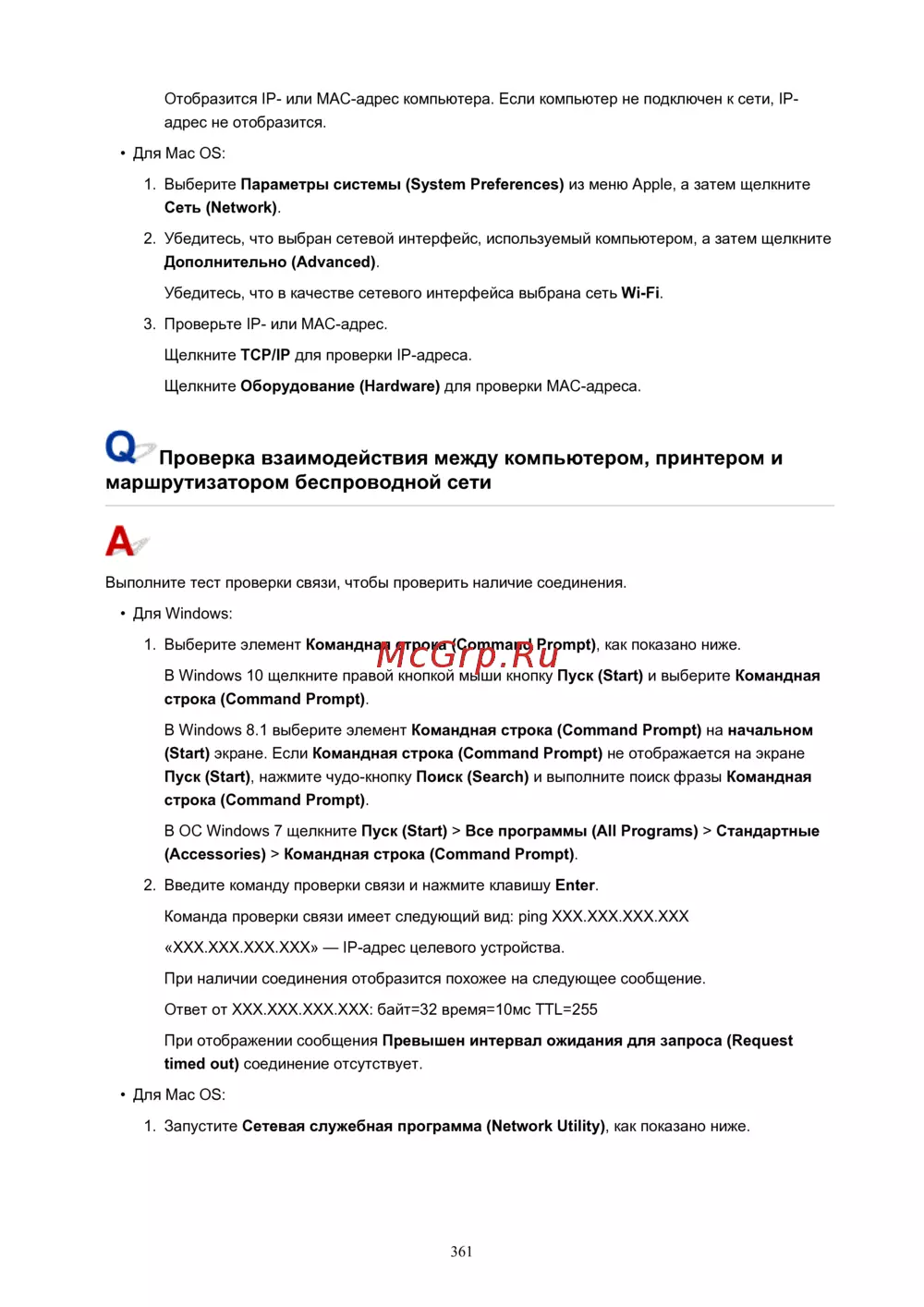 Canon PIXMA TS5140 — как проверить IP и MAC-адрес на компьютере с Windows и Mac OS [361/447]