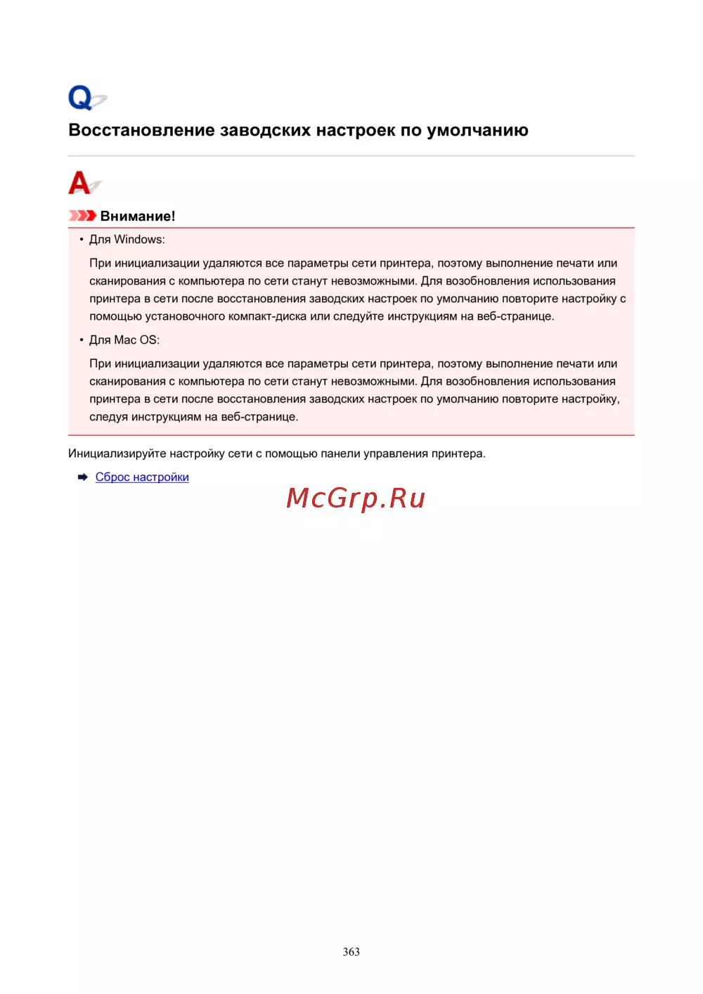 Canon PIXMA TS5140 — восстановление заводских настроек принтера: пошаговое руководство [363/447]