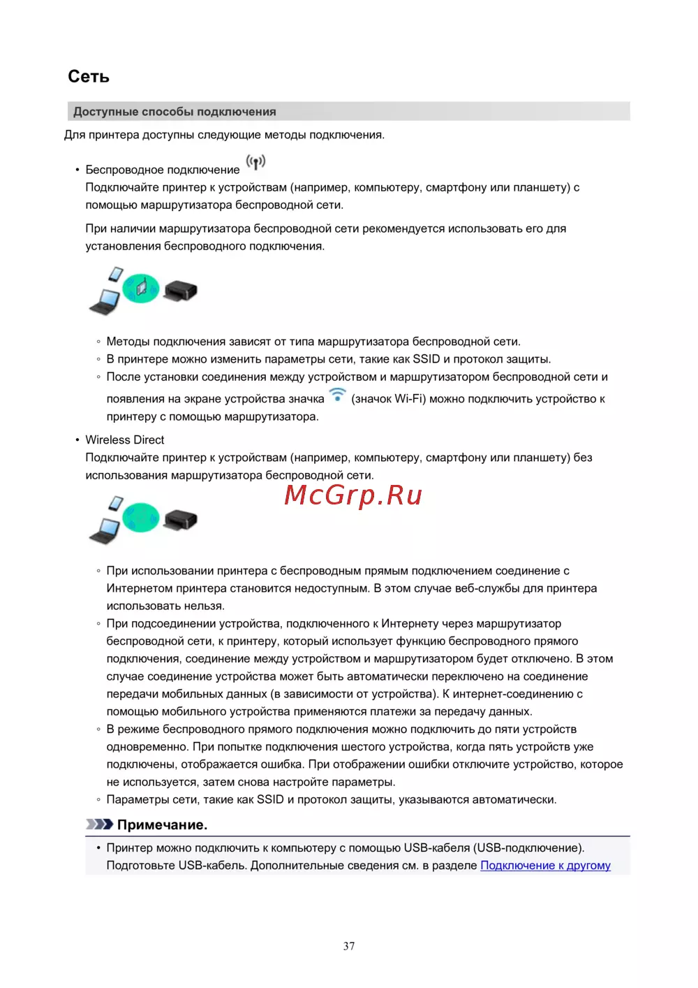 Canon PIXMA TS5140 — способы подключения принтера: беспроводные и USB-методы [37/447]