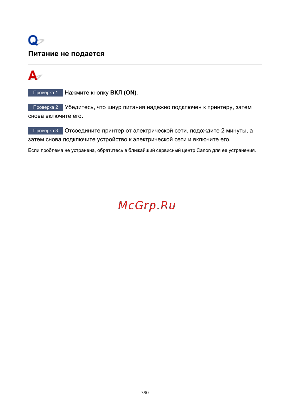 Если проблема не устранена, обратитесь в ближайший сервисный центр Canon для ее устранения.