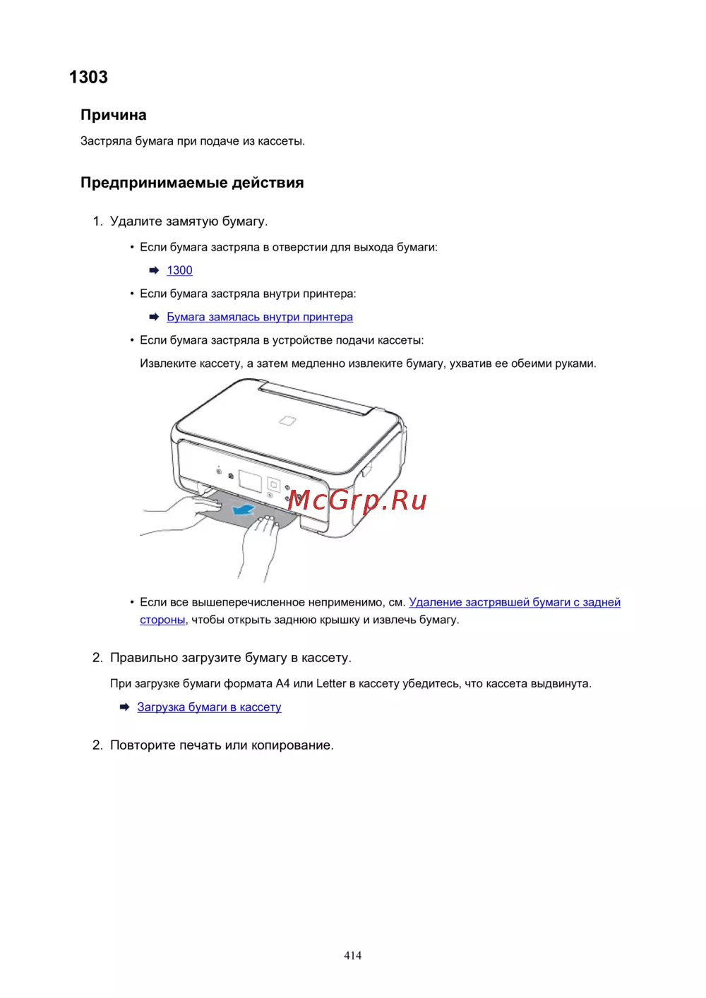 Canon PIXMA TS5140 — как устранить застревание бумаги в принтере: пошаговое руководство [414/447]