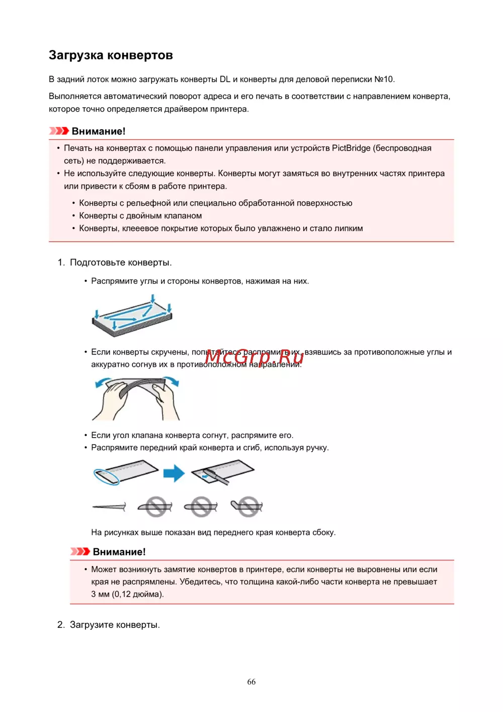 Canon PIXMA TS5140 — как правильно загружать конверты в принтер для печати [66/447]