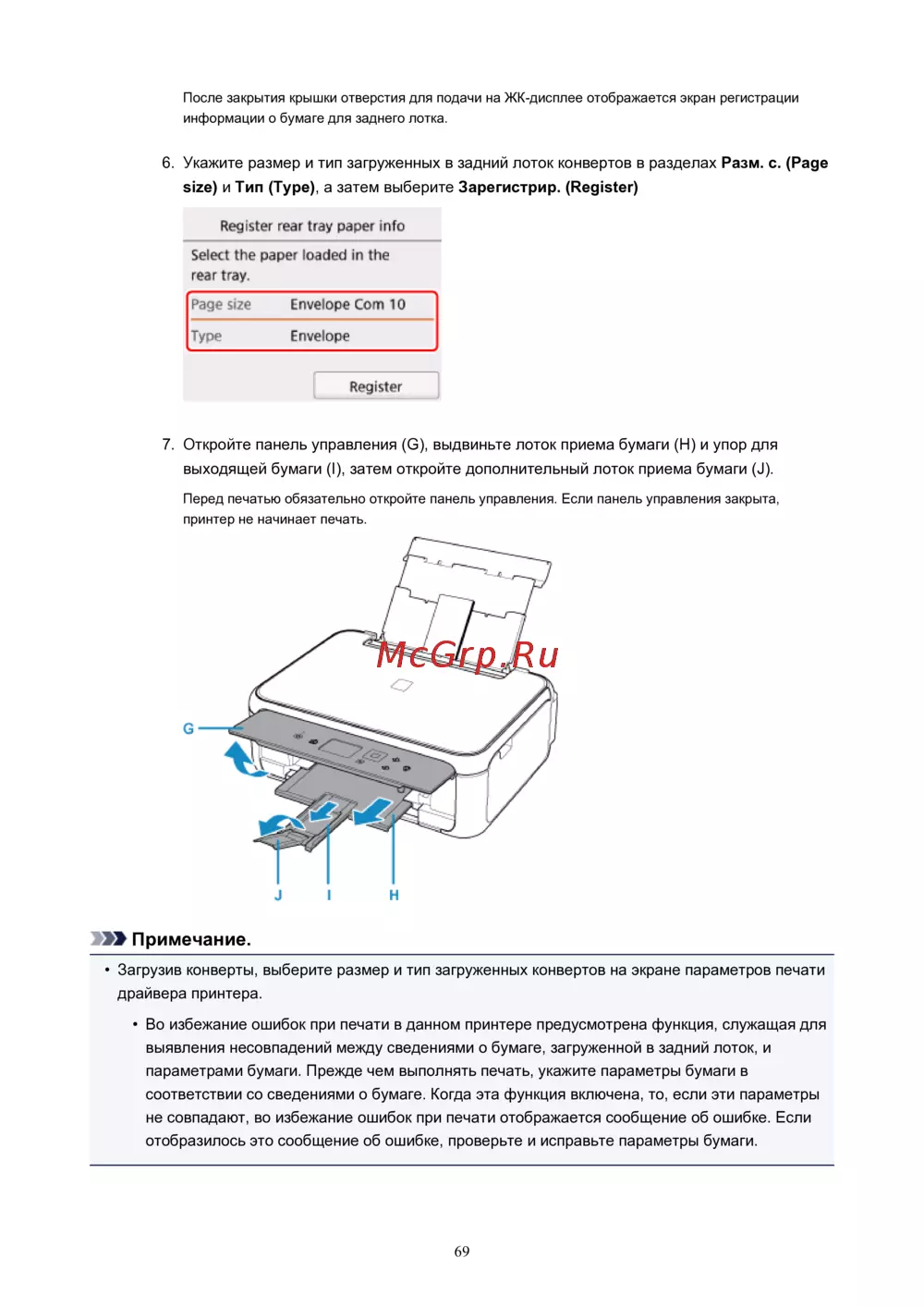 Инструкция по настройке принтера при загрузке конвертов. Регистрация размера и типа бумаги, предотвращение ошибок печати. Проверка параметров перед печатью обязательна.