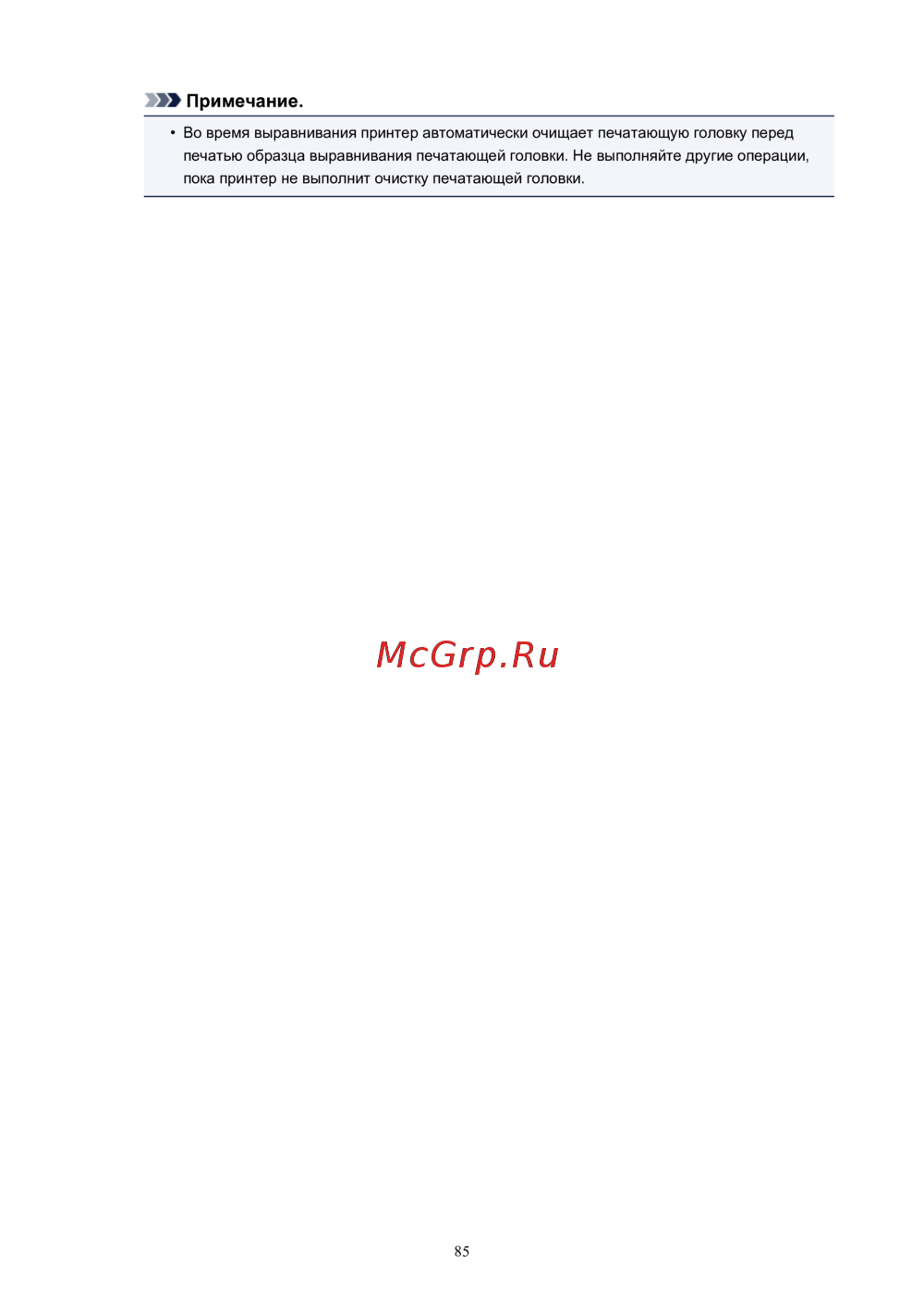 - Печать образца для выравнивания печатающих головок завершена и принтер ожидает сканирования листа p.439