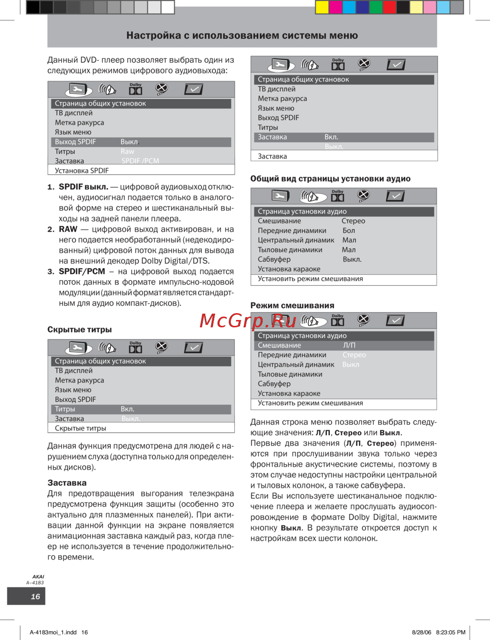 Akai A-4183 — настройки аудио и видео для мультимедийных устройств [18/30]