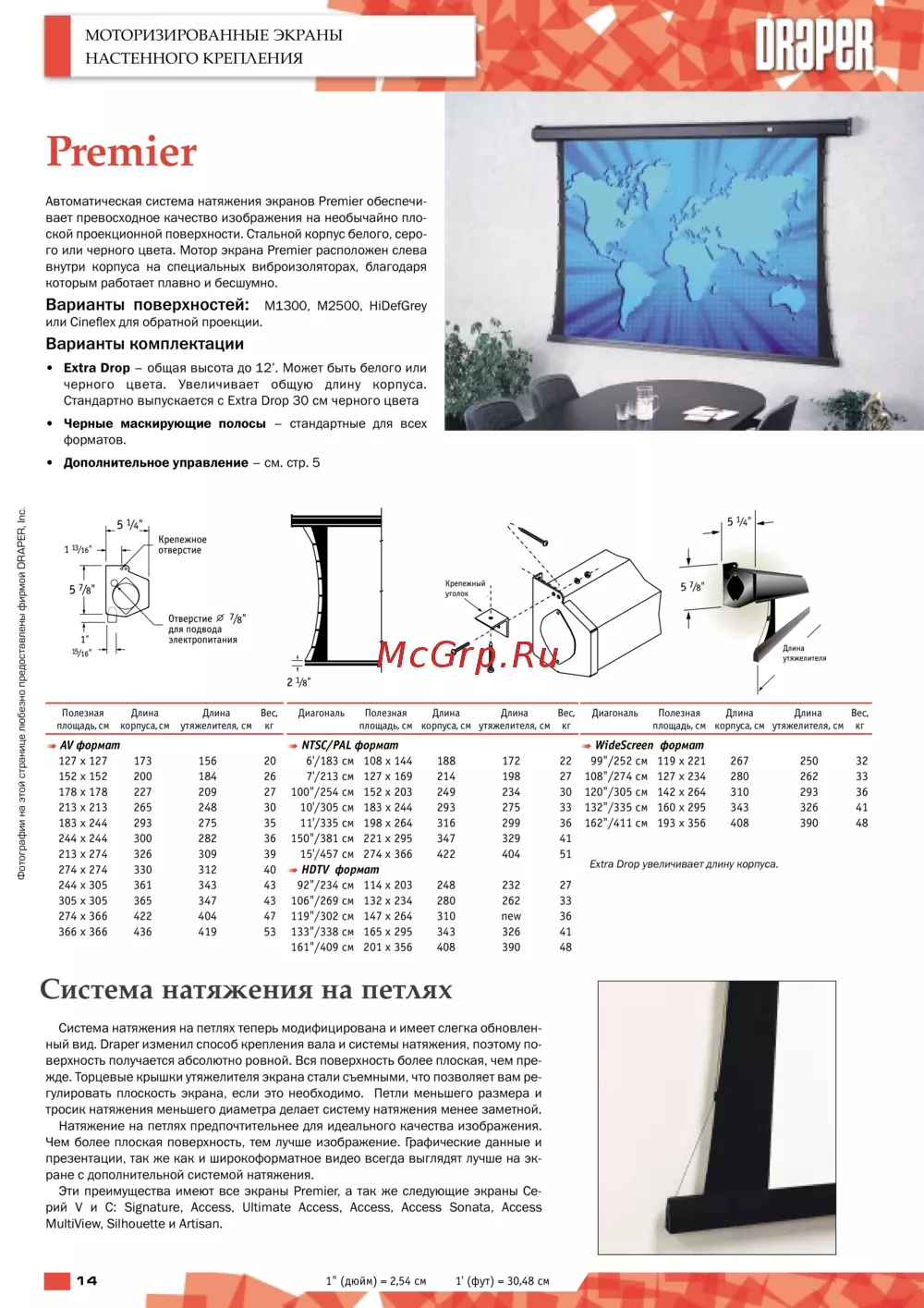 Draper Luma HDTV 92\' MW White Сase (114x203)Инструкция по эксплуатации -