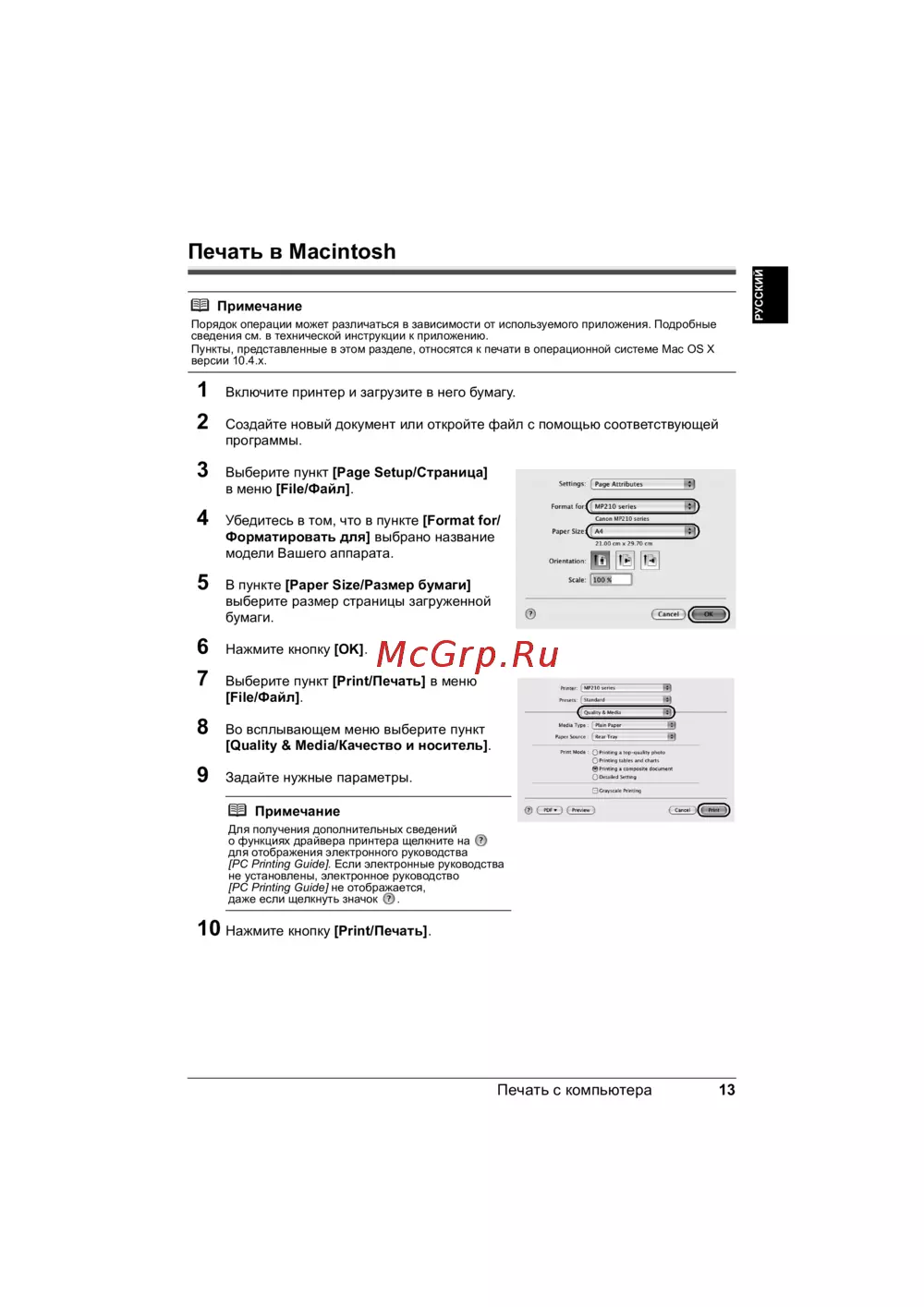 Canon Pixma MP 210 — инструкция по печати с компьютера на Mac OS X [15/27]