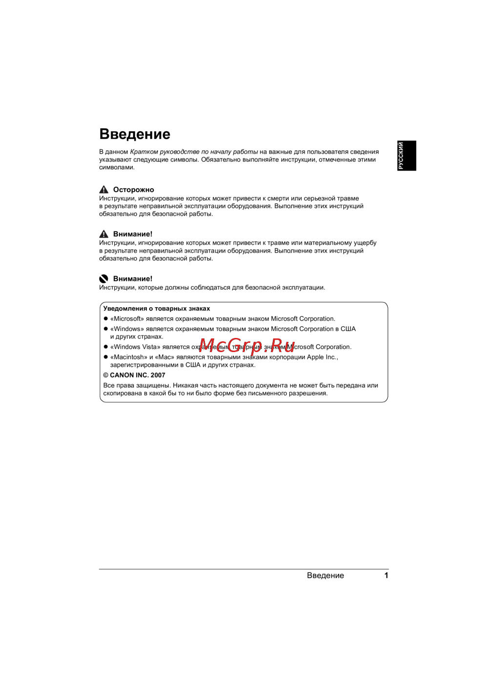 Canon Pixma MP 210 — краткое руководство по безопасной эксплуатации оборудования [3/27]