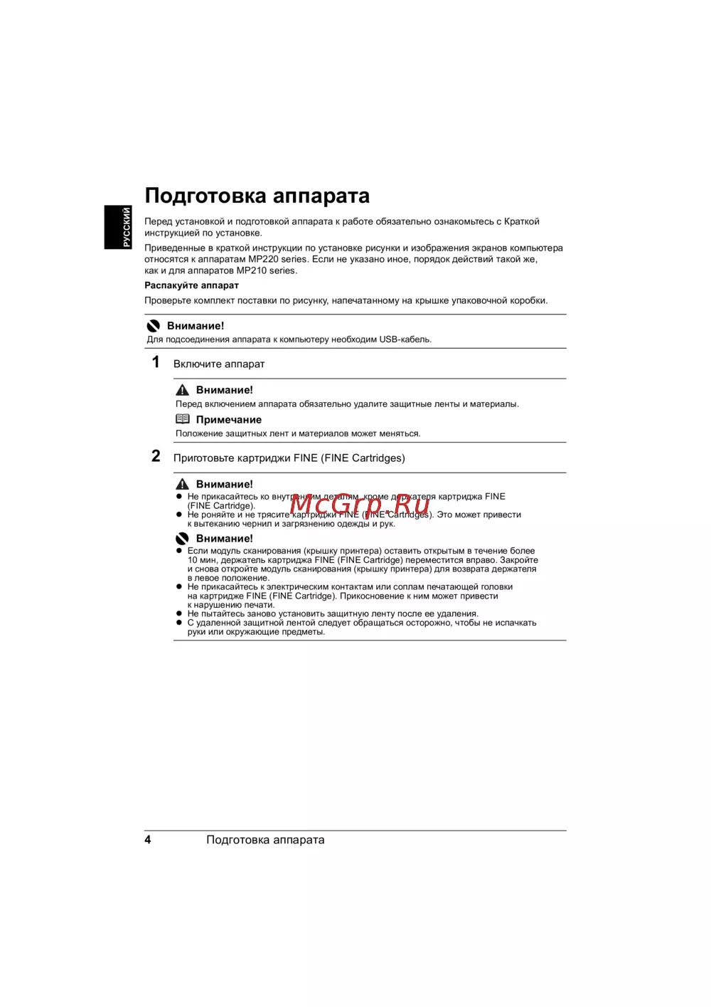 Canon Pixma MP 210 — подготовка аппарата к работе: инструкция и советы [6/27]