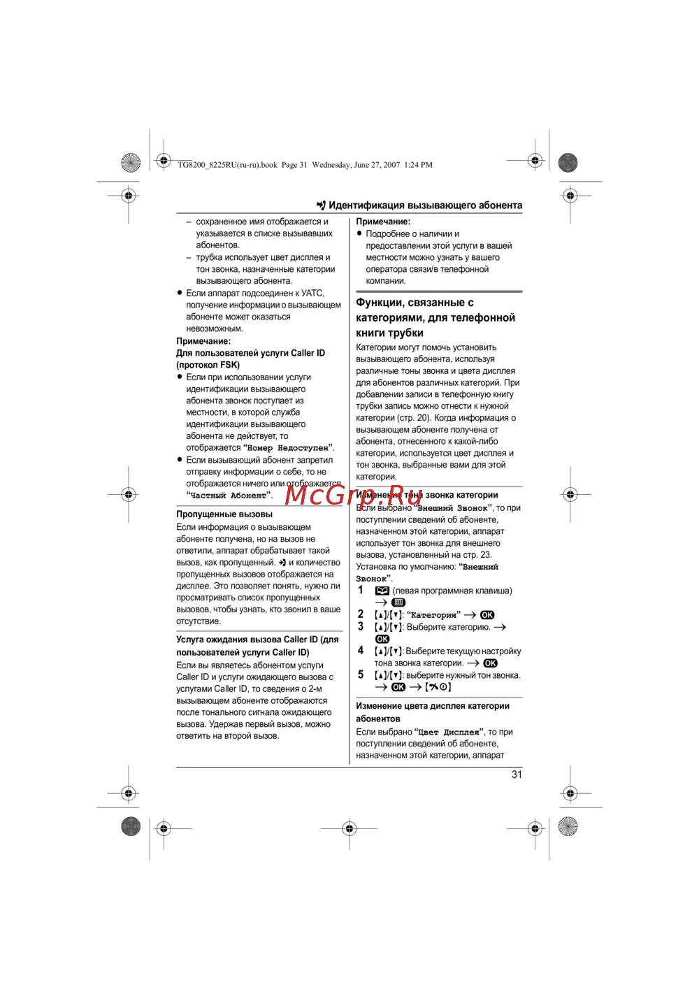 Panasonic KX-TG8226 RU-M [31/64] Функции связанные с категориями для телефонной книги трубки