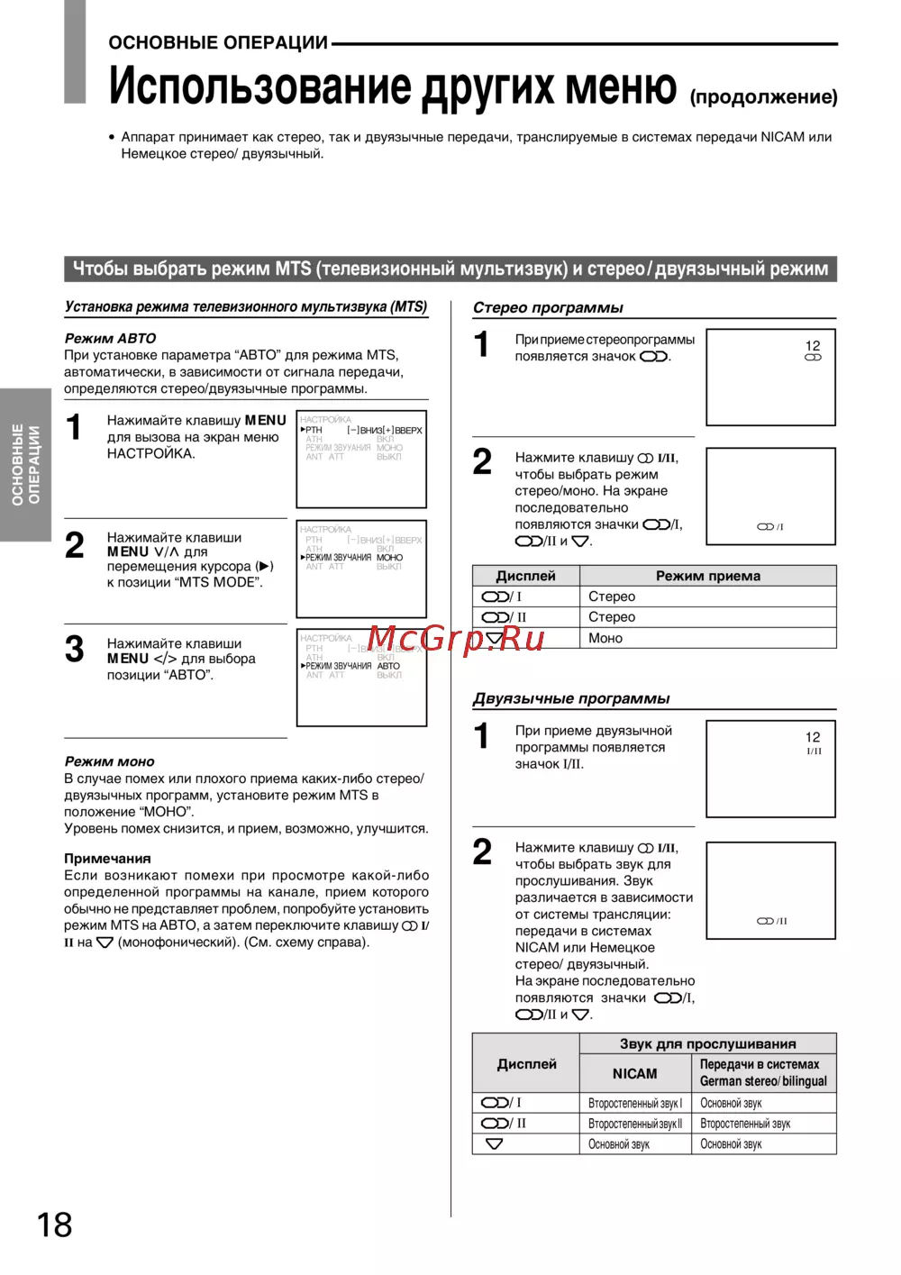 - Ustanovka reωima televizionnogo mul tizvuka mts p.2