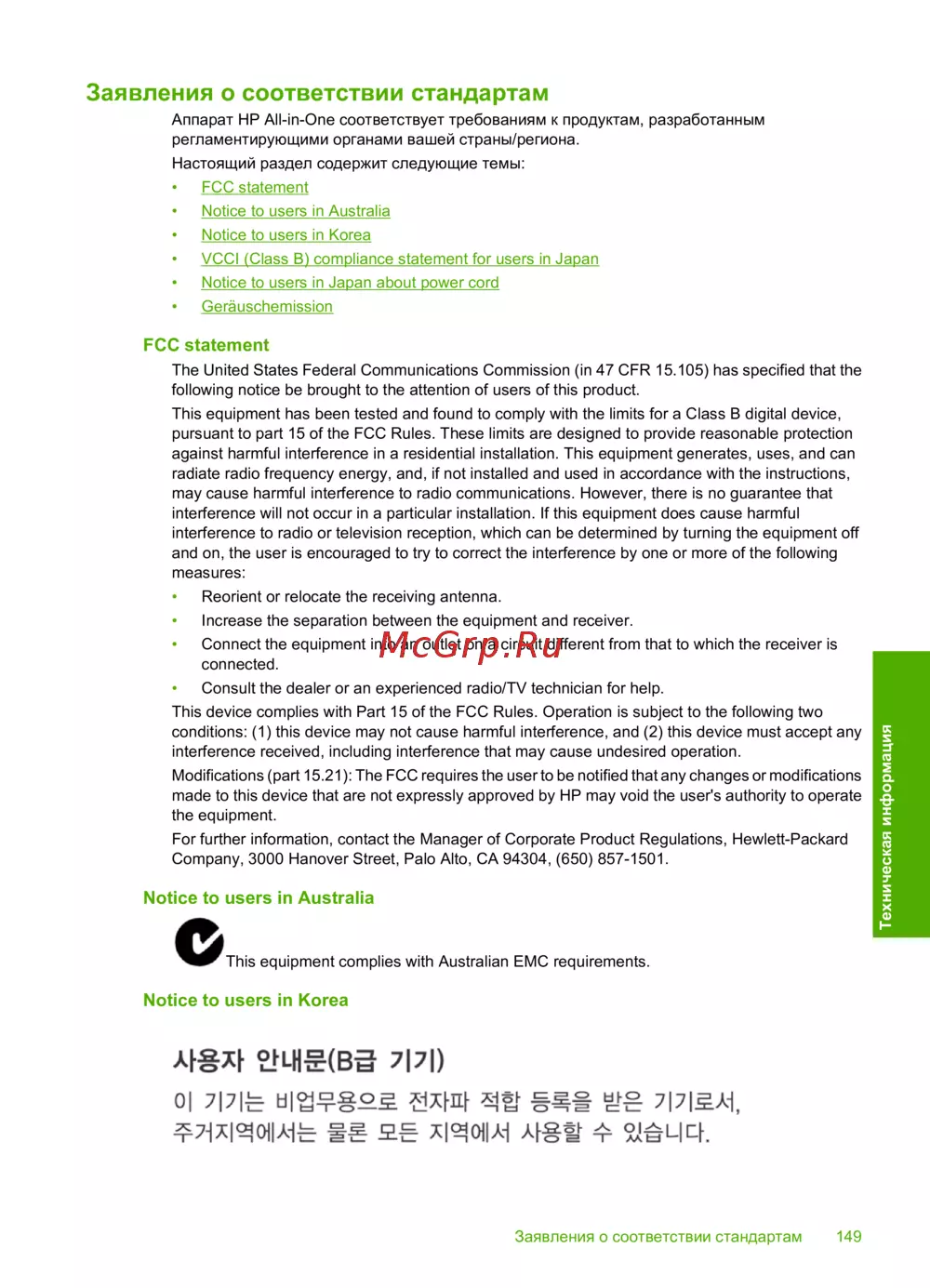 HP DeskJet F4172 [151/158] Заявления о соответствии стандартам