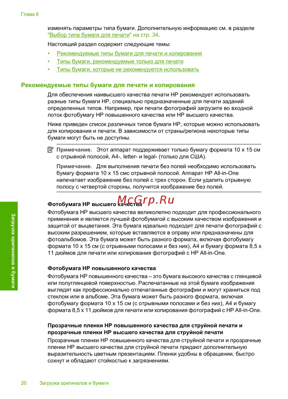 - Поддерживаемые типы файлов для аппарата hp all in one p.130