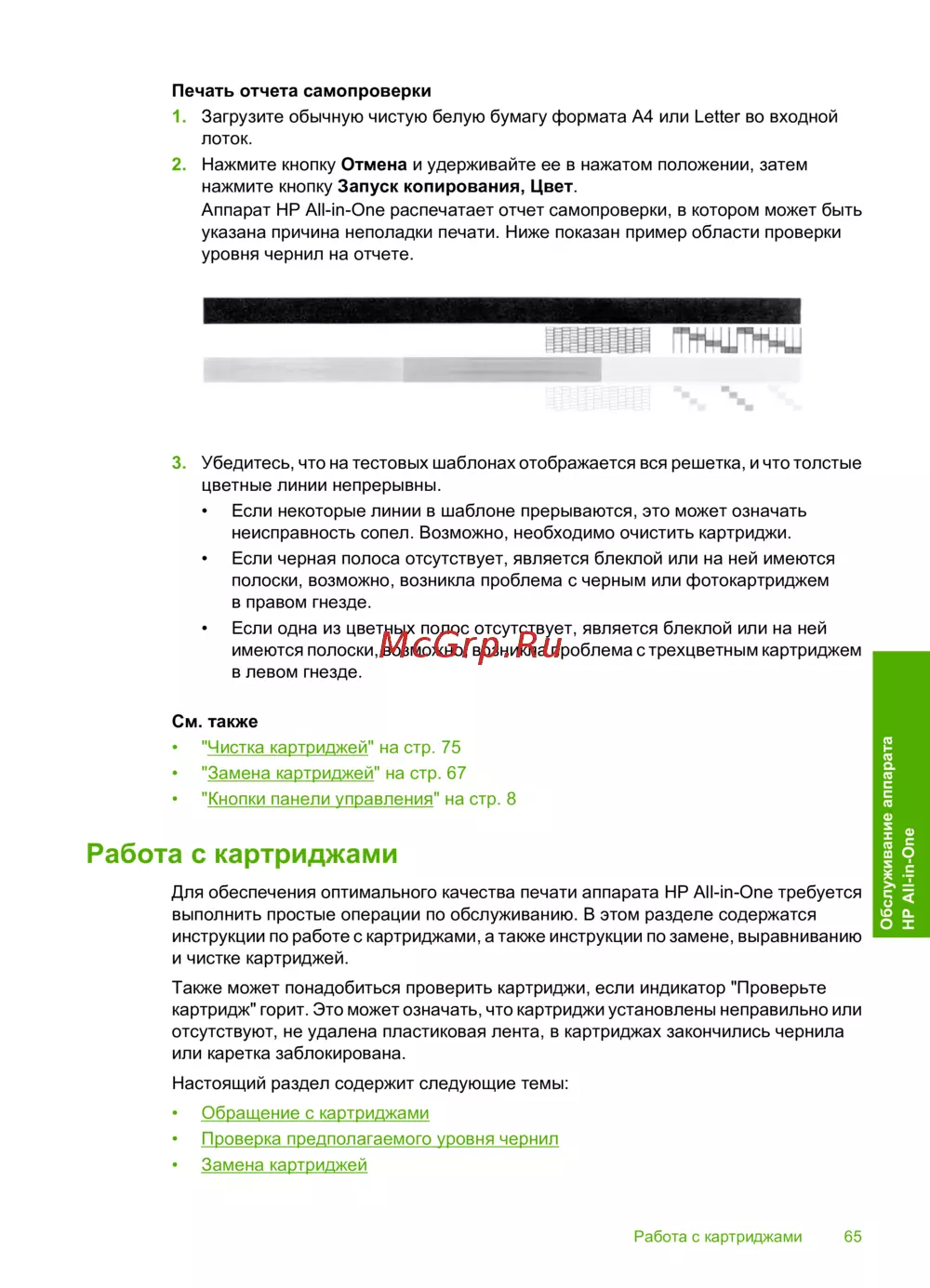 инструкции по работе с картриджами, а также инструкции по замене, выравниванию
