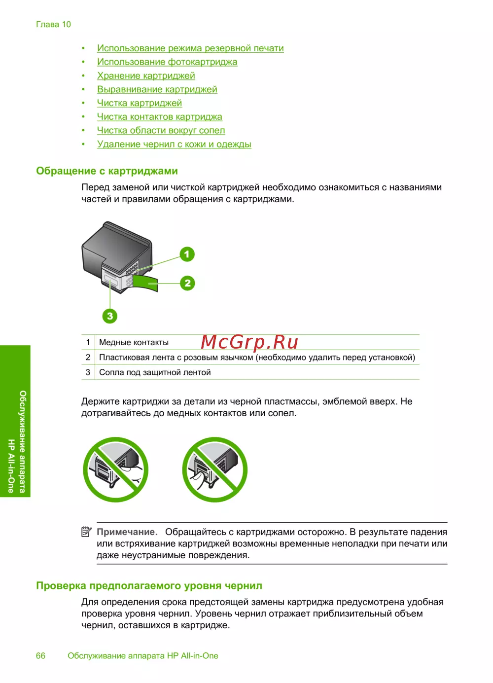 HP DeskJet F4172 — советы по обслуживанию и уходу за картриджами для печати [68/158]