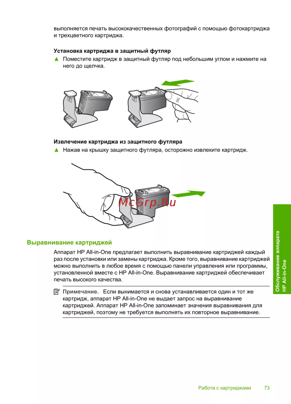 установленной вместе с HP All-in-One. Выравнивание картриджей обеспечивает