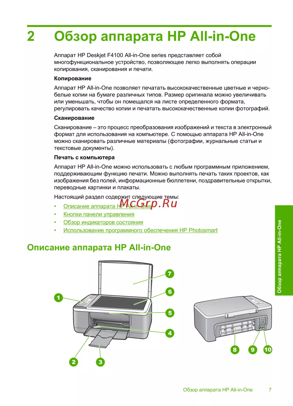 - Справка аппарата hp deskjet f4100 all in one series p.7