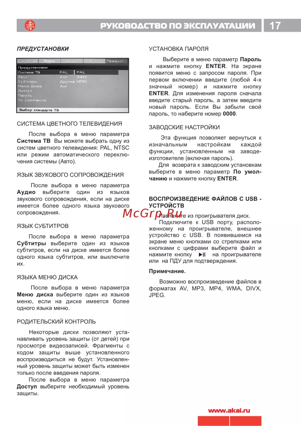Akai DV-P4920KDSMИнструкция по эксплуатации -