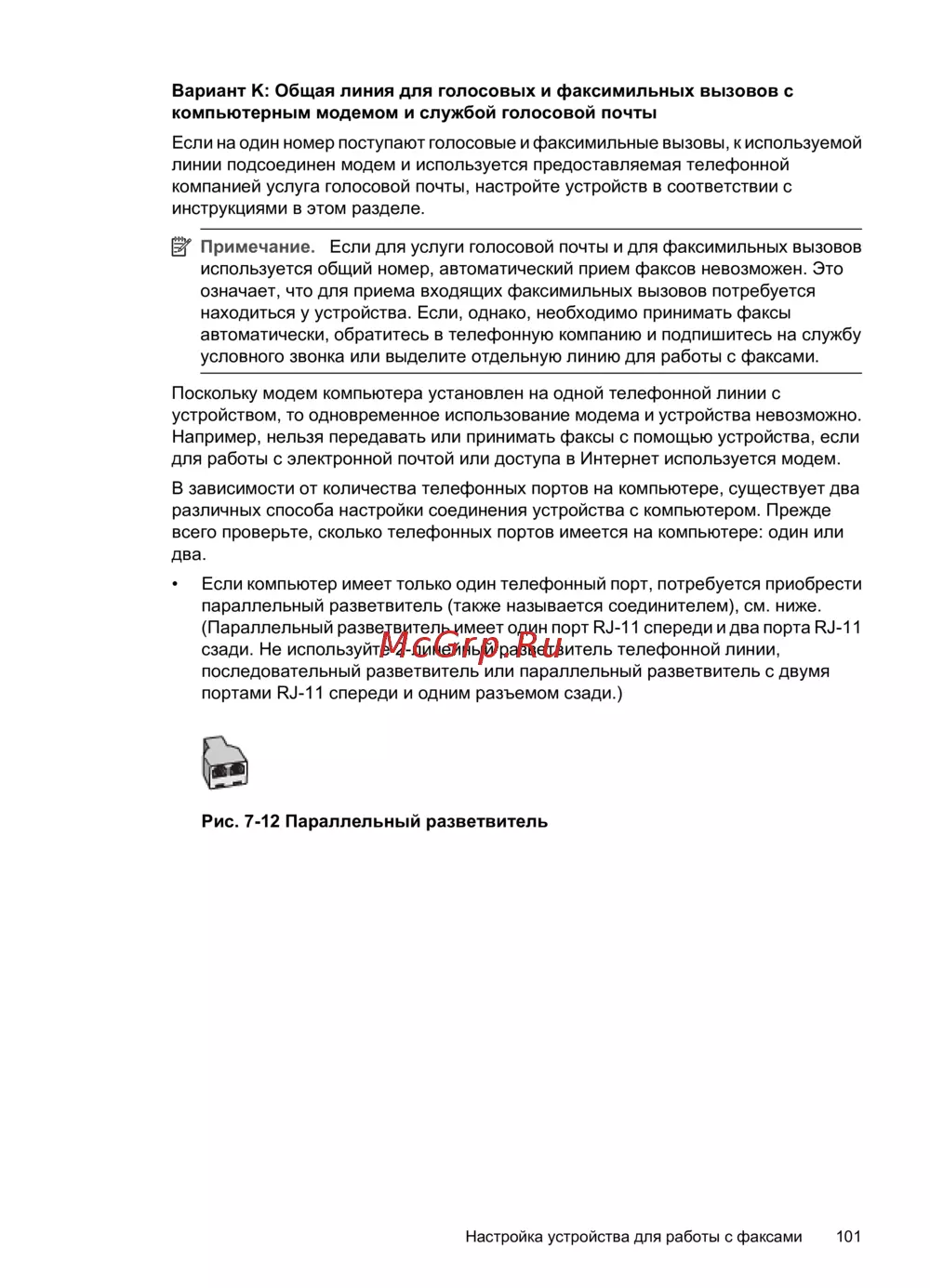 Вариант K: Общая линия для голосовых и факсимильных вызовов с