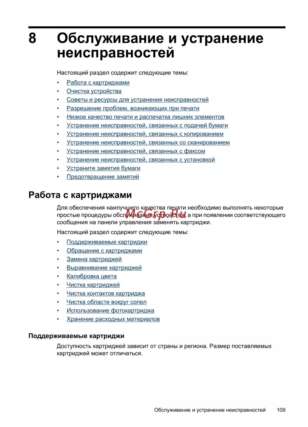 простые процедуры обслуживания устройства, а при появлении соответствующего